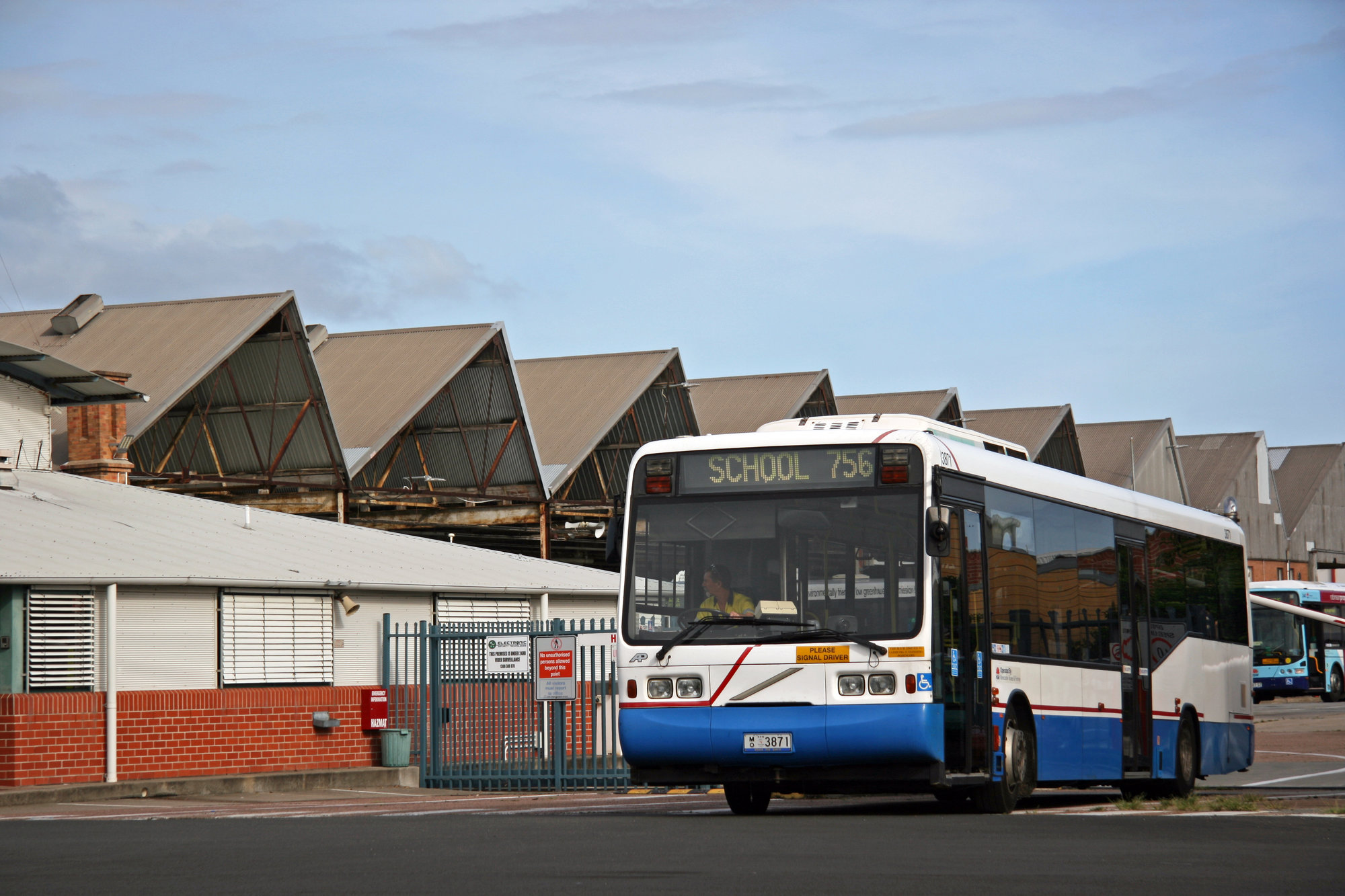 Ward, John, STA Volvo B10BLE 3871, Volvo B7RLE 2447 all over ad, depot yard to Denison Street, Hamilton, NSW, 8 April 2014 (8th April 2014), [38071_080414]. Living Histories, accessed 15/04/2026, https://livinghistories.newcastle.edu.au/nodes/view/92215