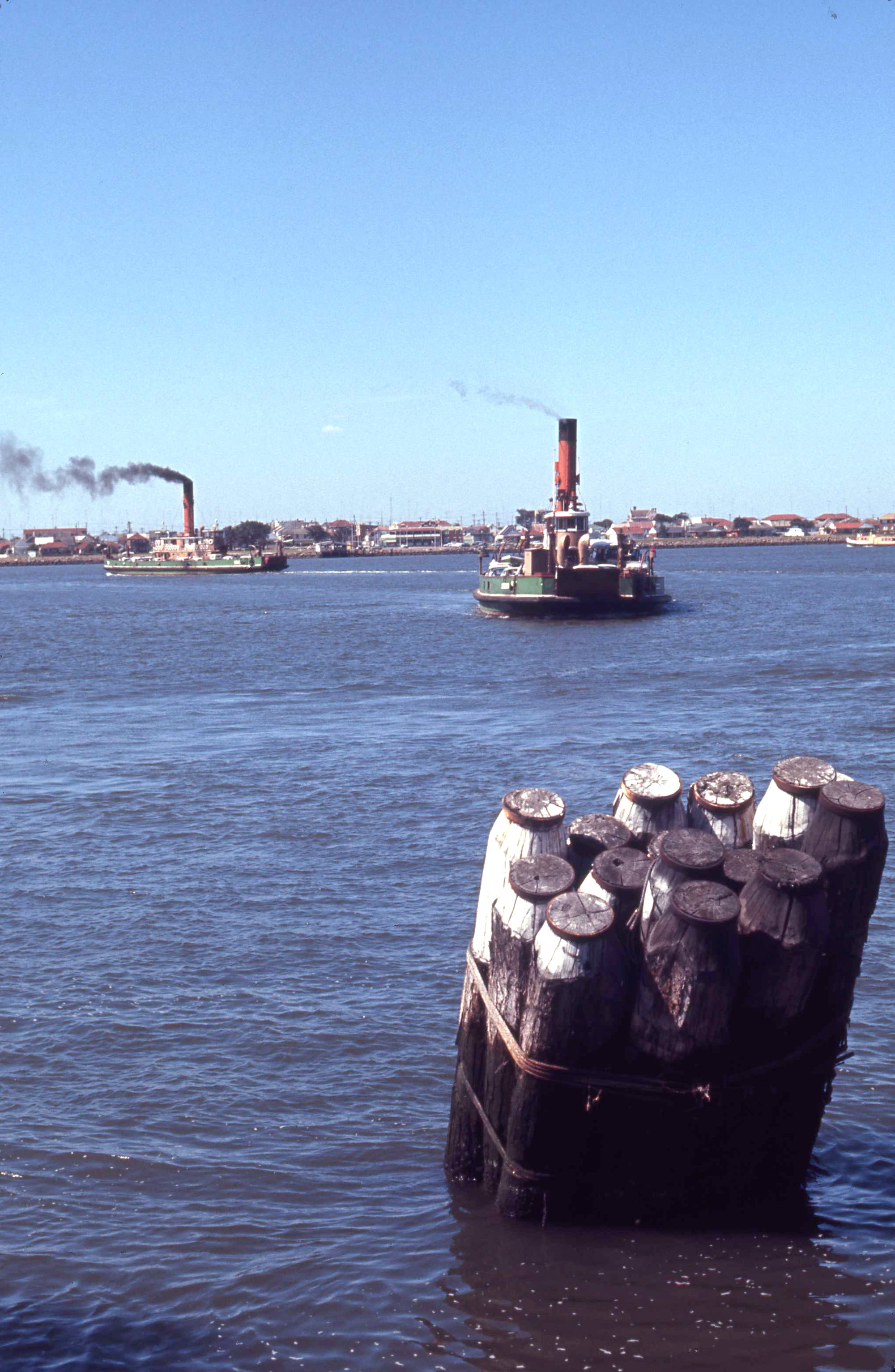 DMR vehicular ferries Lurgurena & Koondooloo crossing Hunter River between Newcastle & Stockton, NSW, 31 October 1970
