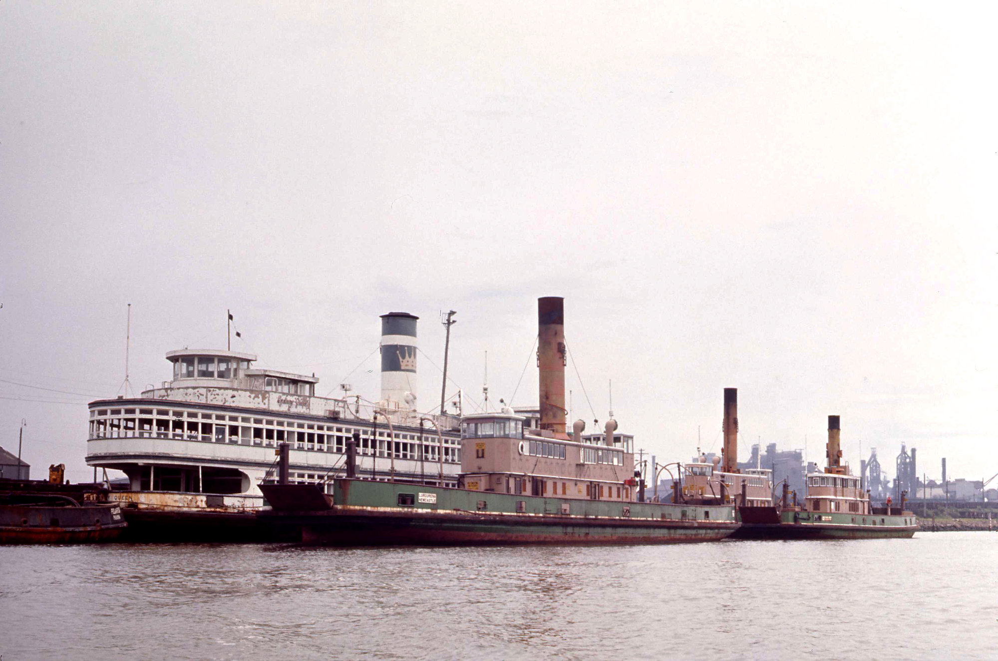 Ward, John, Ocean Tug Polaris, Showboat Sydney Queen, vehicular ferries Lurgurena, Koondooloo, Kooroongaba at Port Waratah, Newcastle, NSW, 27 December 1971 (27th December 1971), [00478_271271]. Living Histories, accessed 23/01/2026, https://livinghistories.newcastle.edu.au/nodes/view/92376