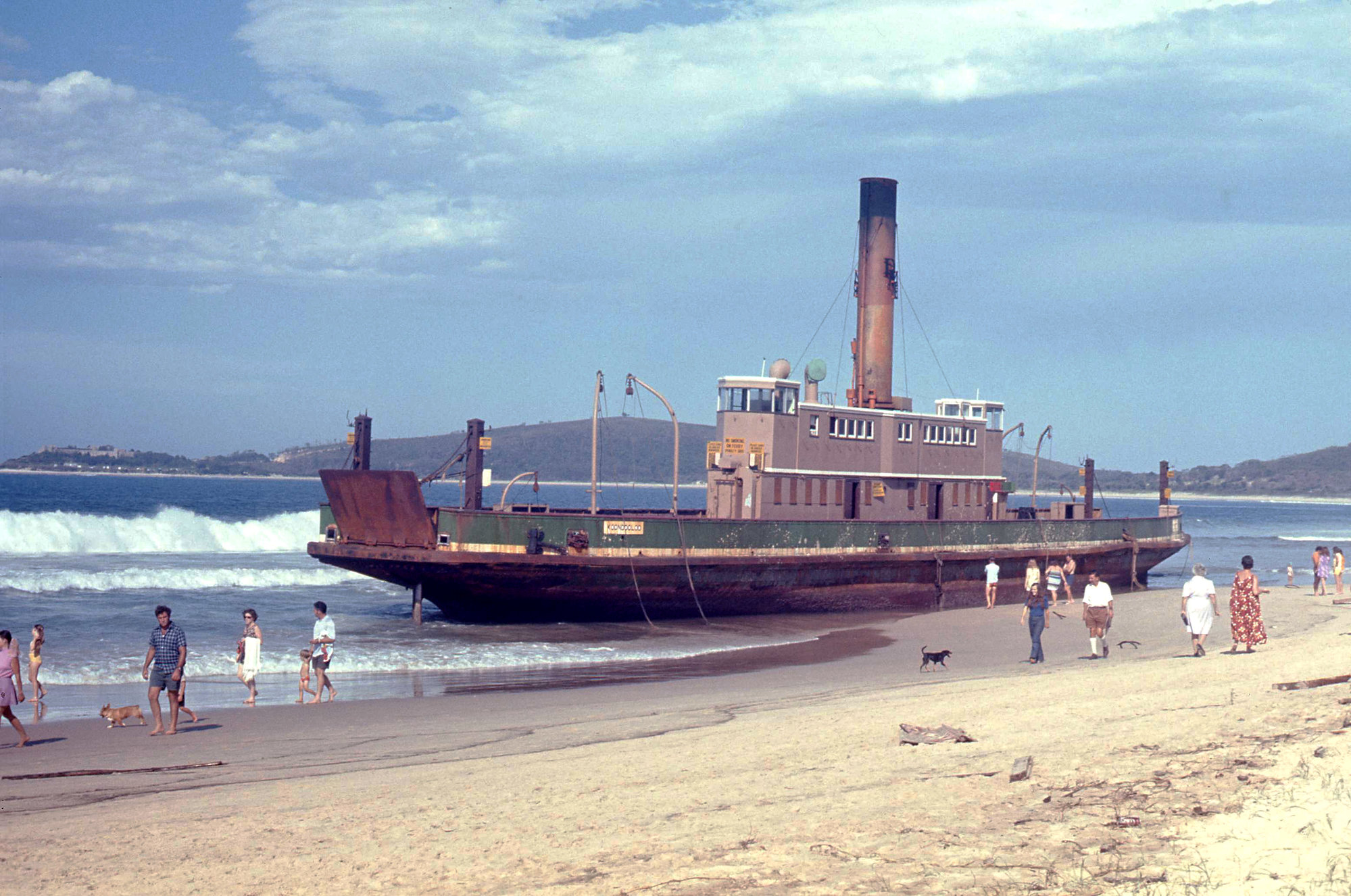 Ward, John, Unknown owner Vehicular ferry Koondooloo & people on beach, South West Rocks, NSW, 22 January 1972 (22nd January 1972), [00517_220172]. Living Histories, accessed 09/02/2026, https://livinghistories.newcastle.edu.au/nodes/view/92386