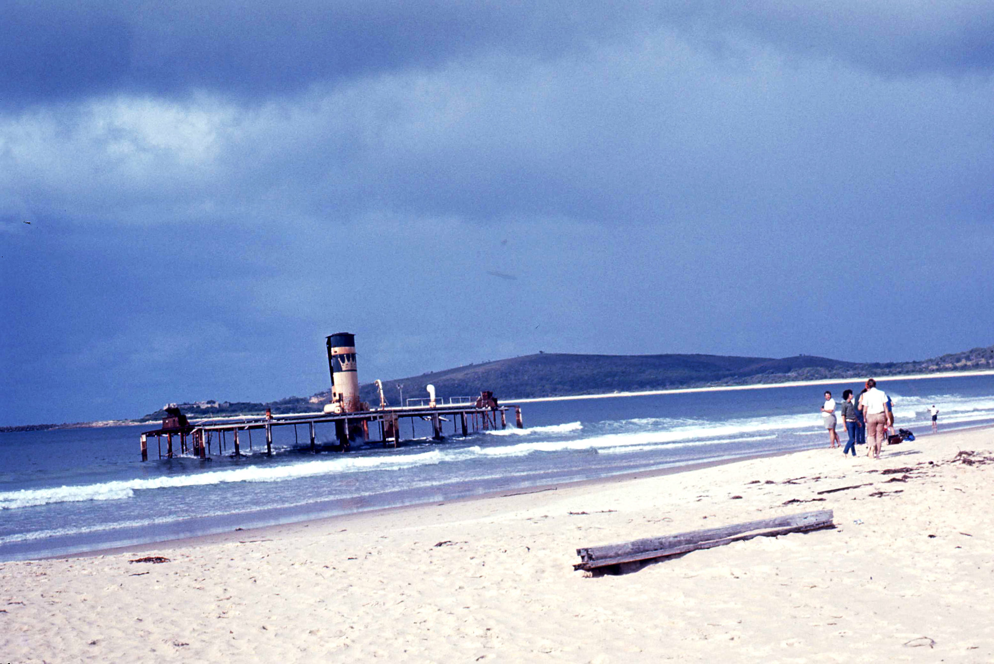 Remains of Showboat Sydney Queen (Kalang) on beach at Trial Bay, South West Rocks, NSW, 24 March 1973