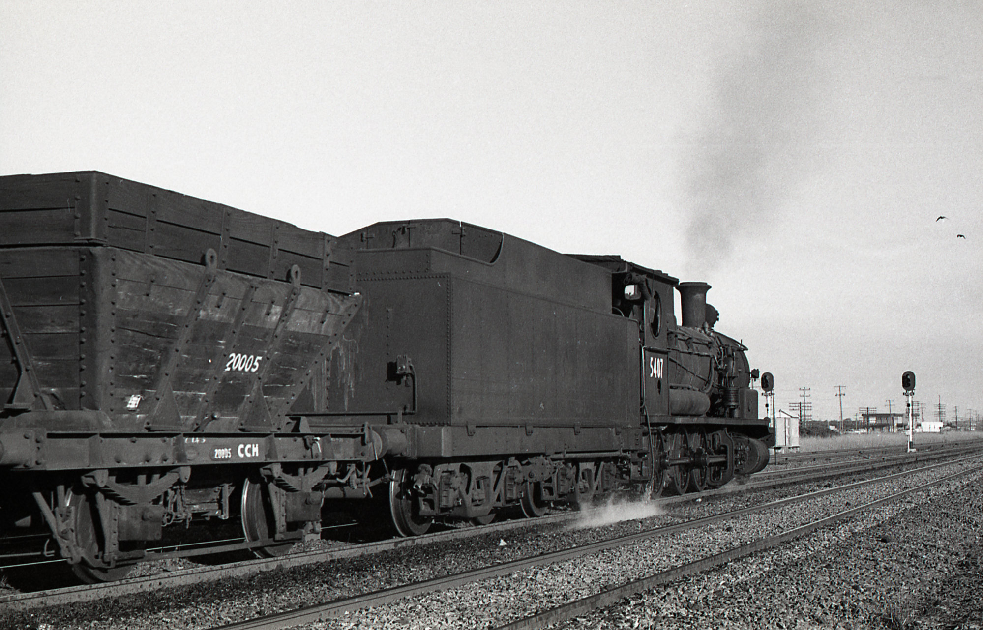 Locomotive 5407 'Up' Bloomfield coal train, Hexham, NSW, 30 August 1972