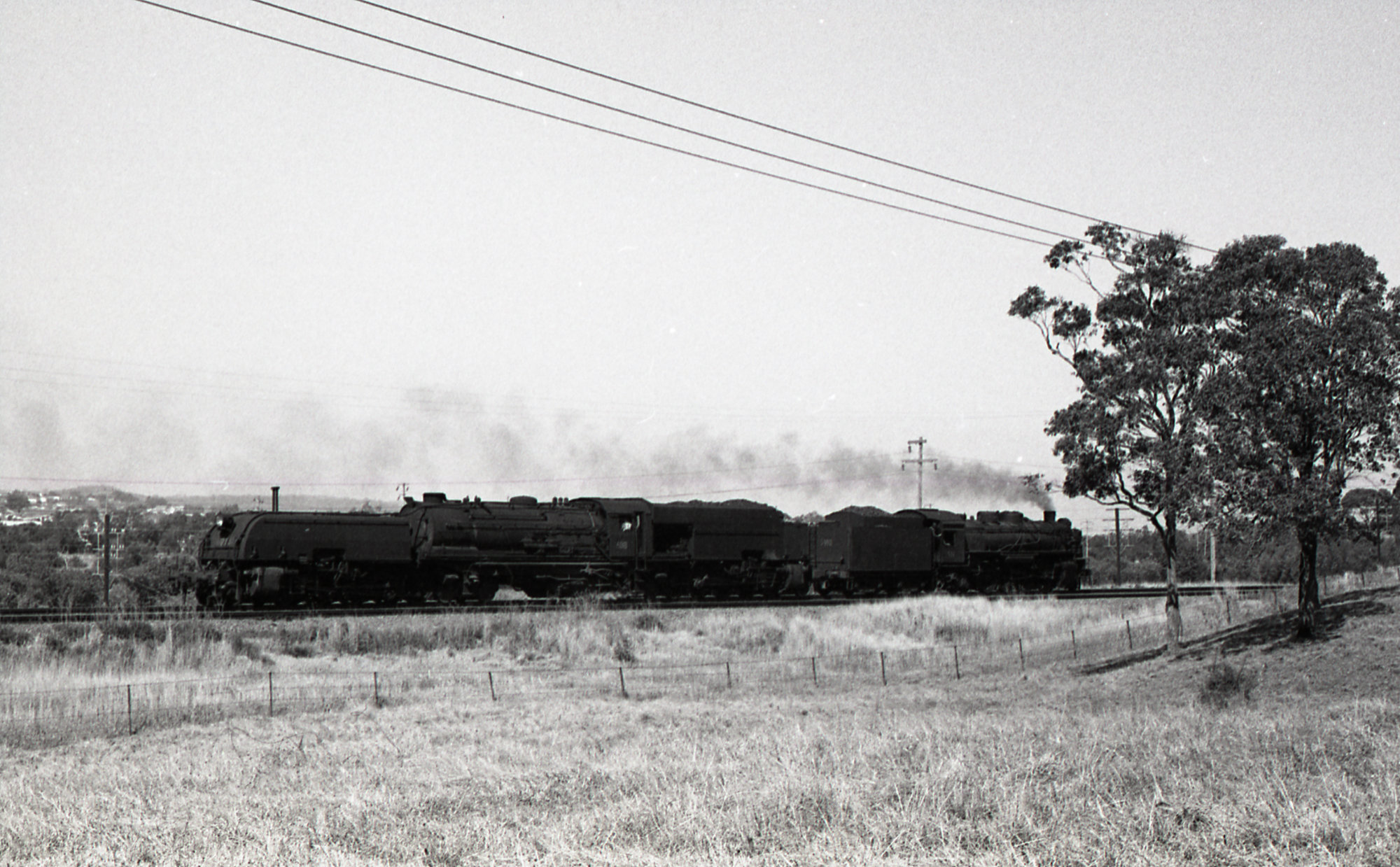 Andrews, Brian Robert, Locomotives 5910 and 6018 'Up Light engine' at Cockle Creek, NSW, 2 September 1972 (2nd September 1972), [BRAN070A_027]. Living Histories, accessed 19/03/2026, https://livinghistories.newcastle.edu.au/nodes/view/92445