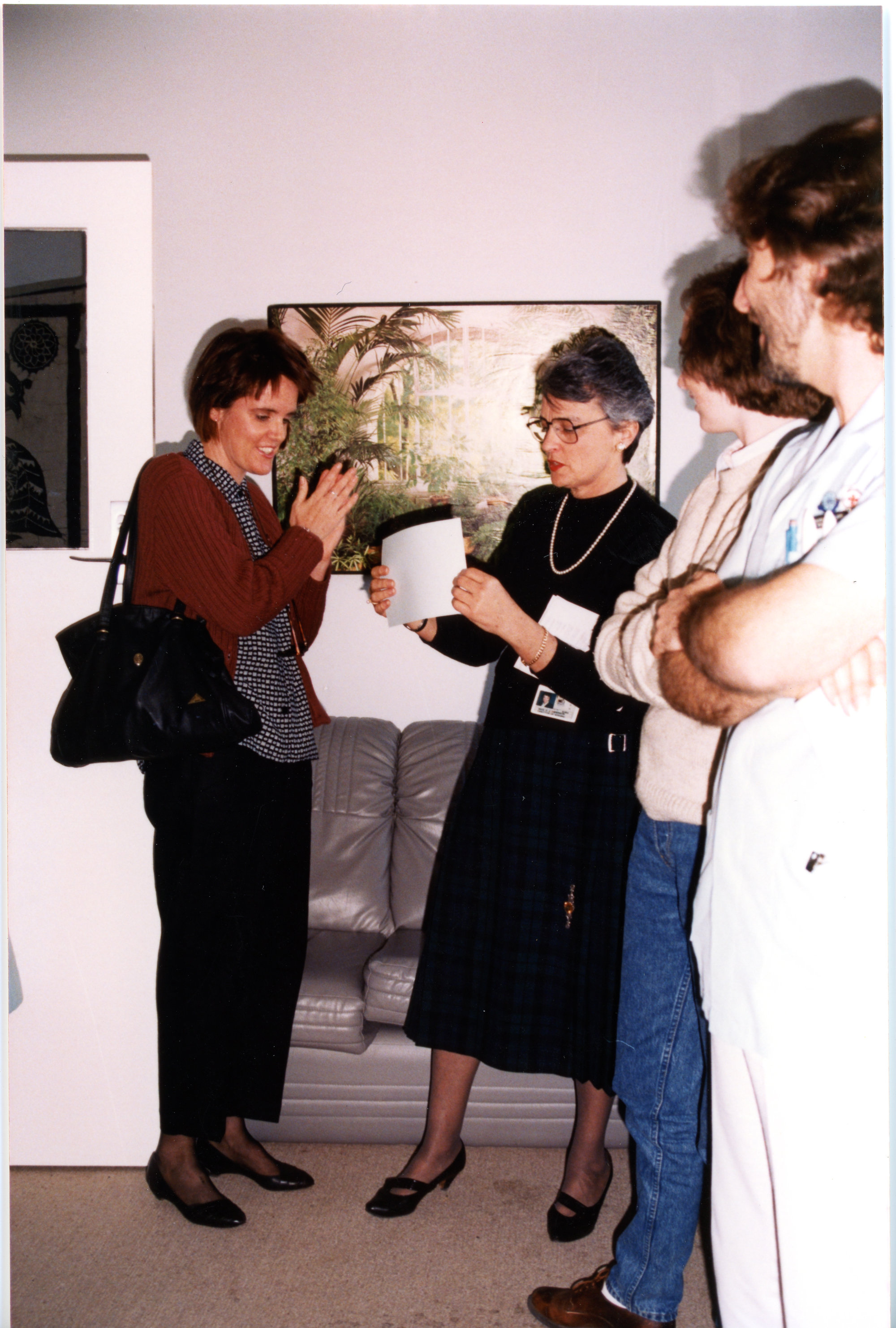 Judy Avis RN; Deirdre Anderson Director of Nursing Royal Newcastle Hospital; Simone Dagg RN; Darren Sheldon RN; Presentation HIV Nursing Course Royal Newcastle Hospital (1990), [C3309_RNHphotos_090]. Living Histories, accessed 14/03/2026, https://livinghistories.newcastle.edu.au/nodes/view/92584