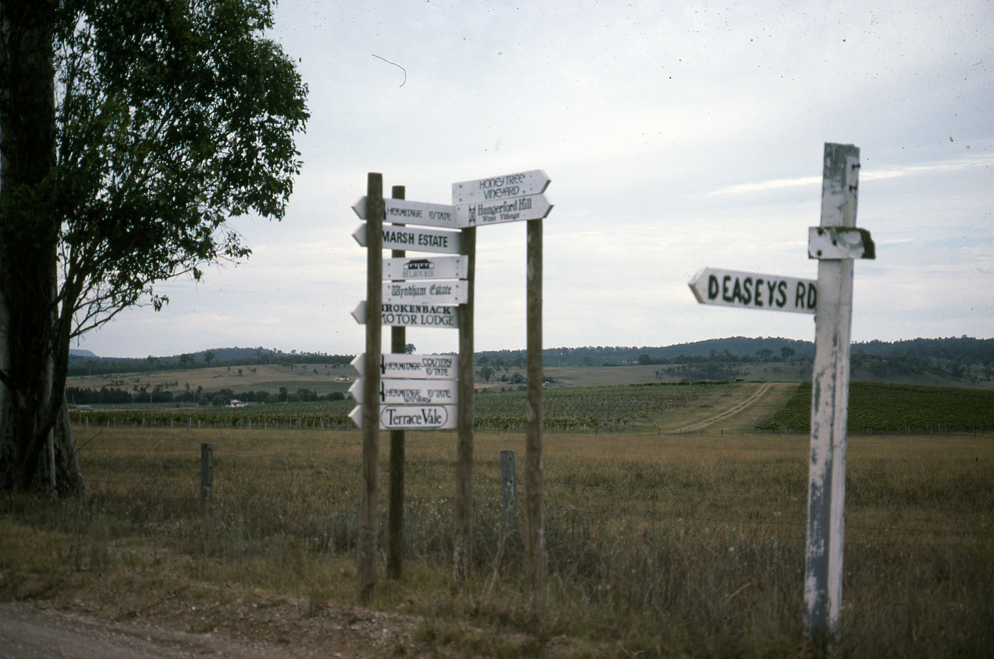 Medical Communication Unit, University of Newcastle, Australia, Signposts, Hunter Valley, NSW, Australia, [MCU-HunterVineyards-065012]. Living Histories, accessed 12/02/2026, https://livinghistories.newcastle.edu.au/nodes/view/9281