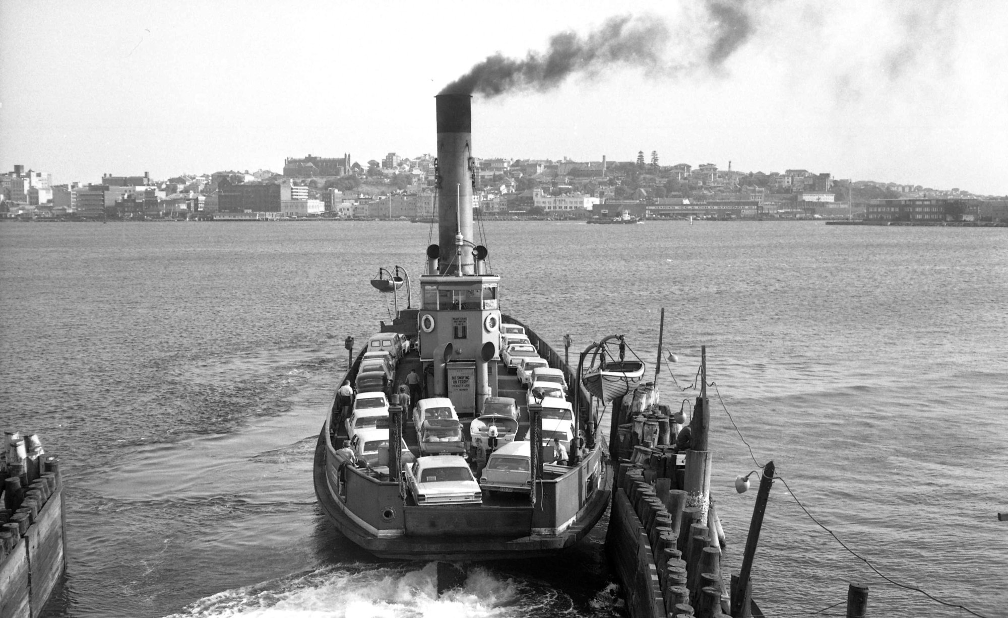 DMR Vehicular ferry Lurgurena on Hunter River leaving Stockton for Newcastle, NSW, 30 October 1971