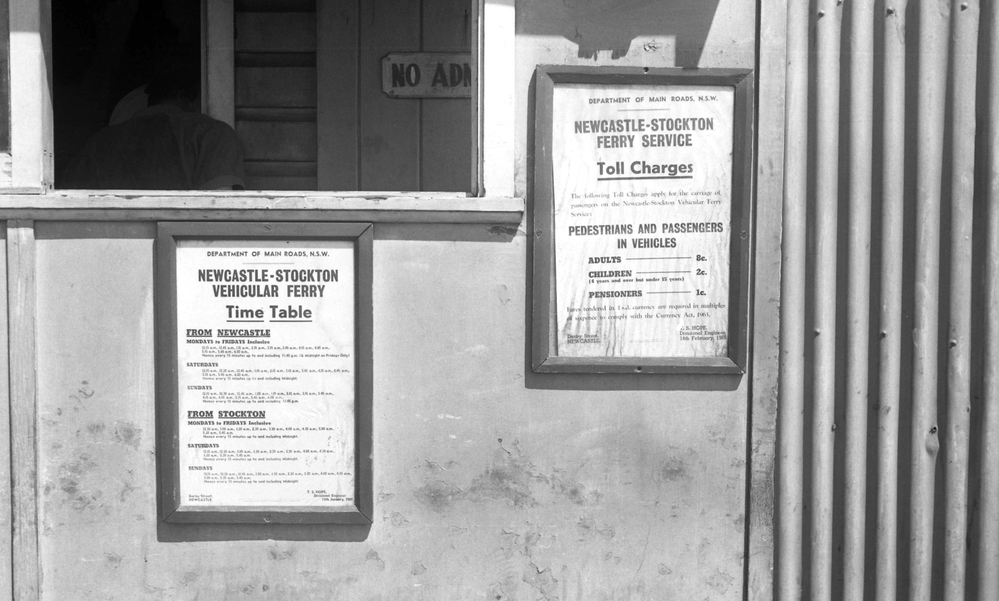 Ward, John, DMR Vehicular ferry toll charges for service to and from Stockton & Newcastle, NSW, 31 October 1971 (31st October 1971), [01910_311071_7104-29]. Living Histories, accessed 15/04/2026, https://livinghistories.newcastle.edu.au/nodes/view/92834