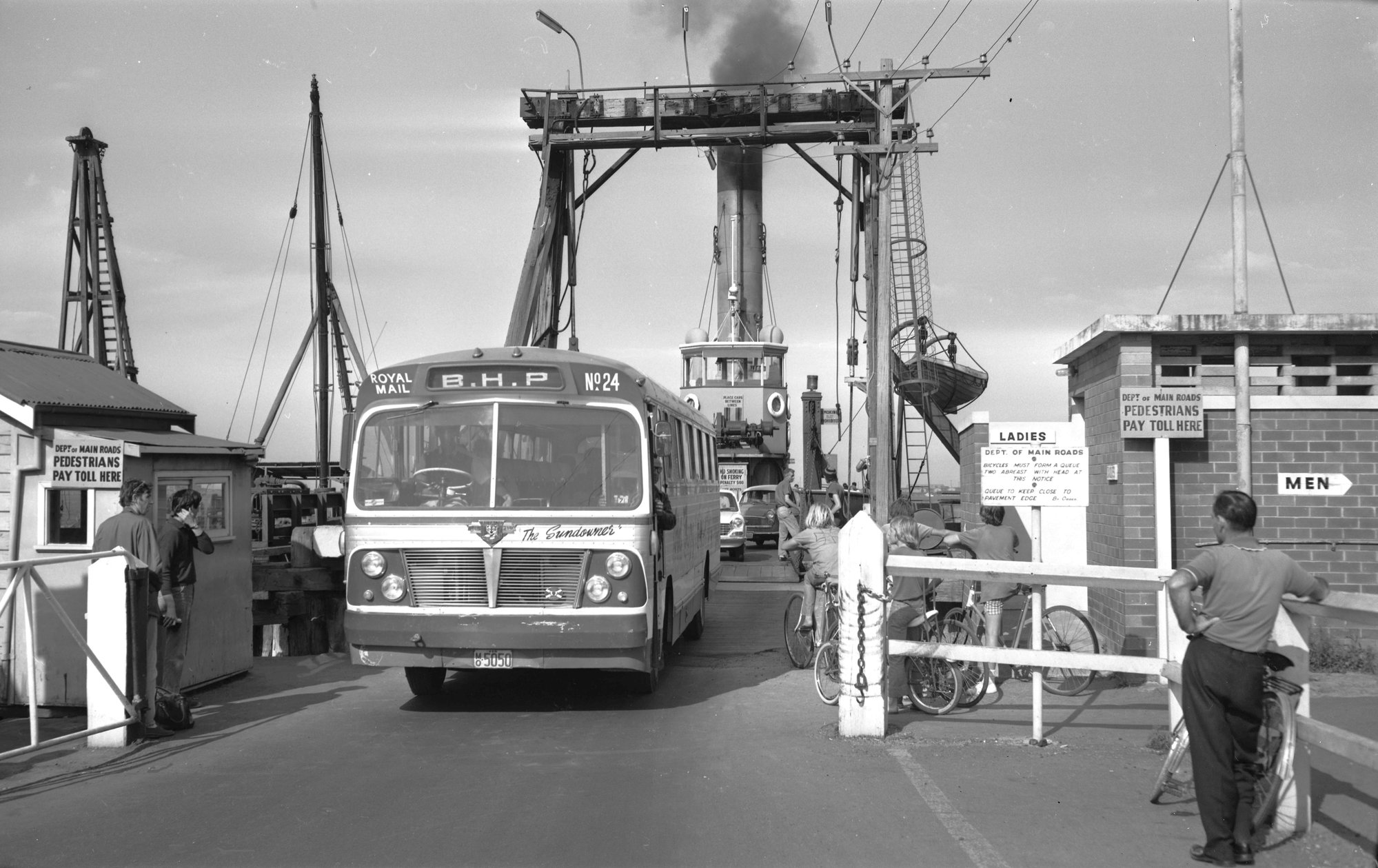 Ward, John, Sid Foggs Albion Viking 5050 coming off Kooroongaba at Stockton, NSW, 30 October 1971 (30th October 1971), [03391_301071_7192-F]. Living Histories, accessed 14/02/2026, https://livinghistories.newcastle.edu.au/nodes/view/92866