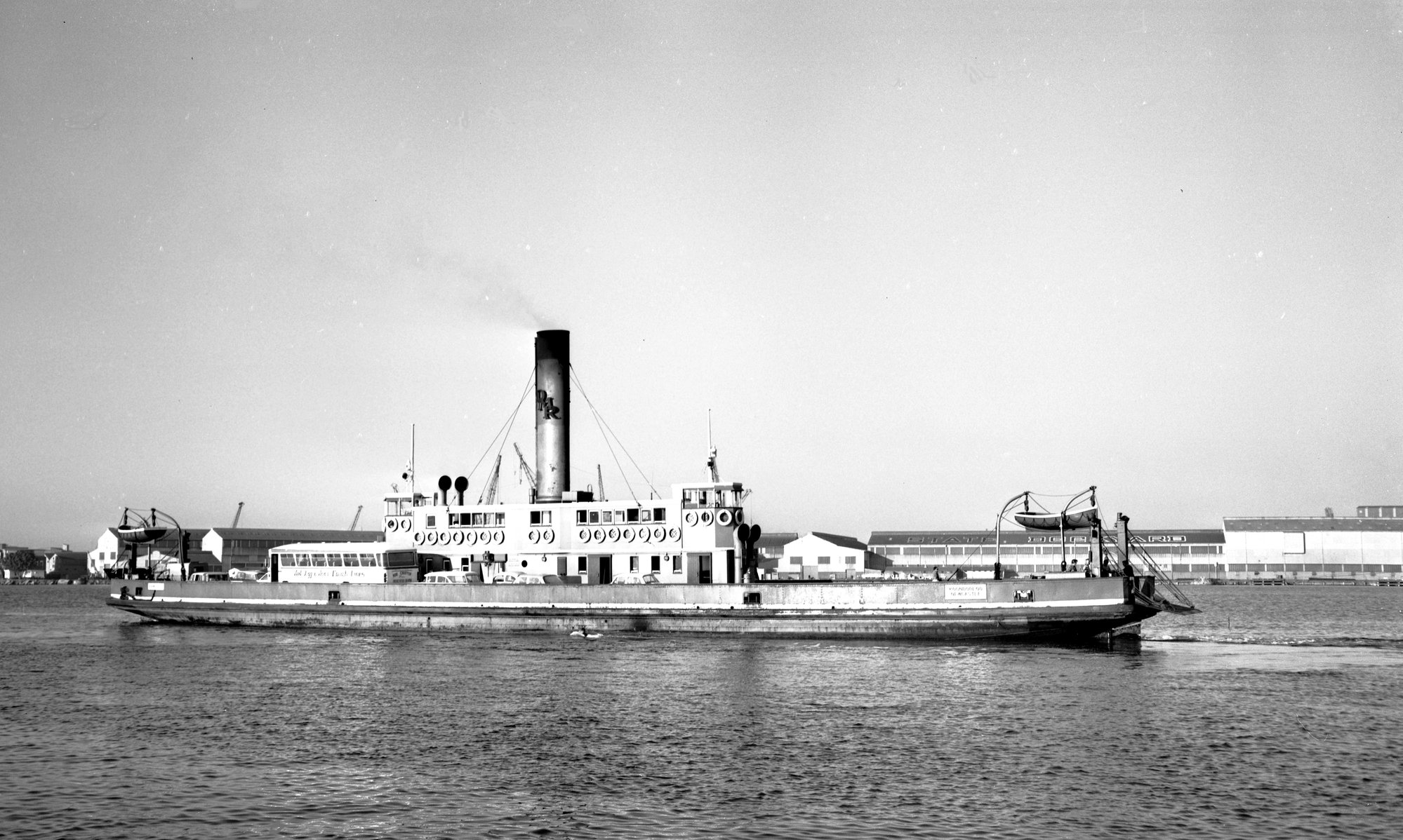 DMR vehicular steam ferry Koondooloo on Hunter River, Newcastle, NSW, 31 October 1971