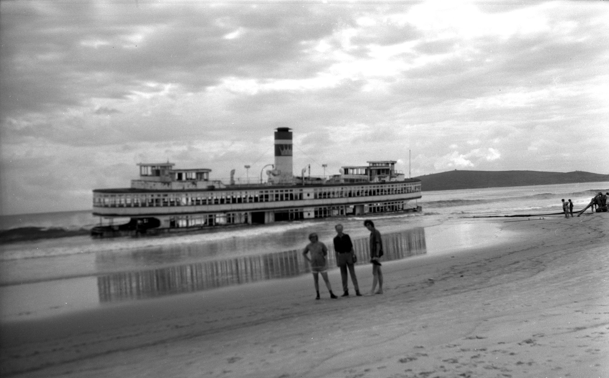 Ex DMR vehicular ferry Koondooloo JW AXM & GT on beach at South West Rocks, NSW, 23 January 1972