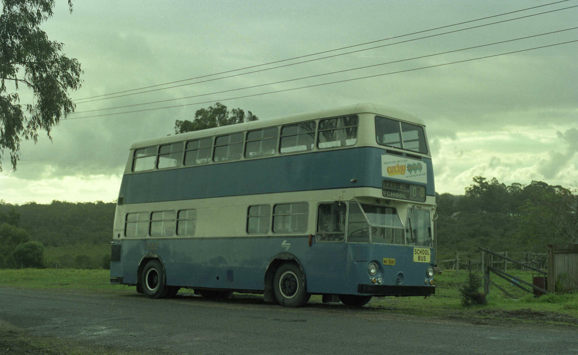 Buladelah BS, Leyland Atlantean MO-8845 (x 1222) Buladelah, NSW, May 1983