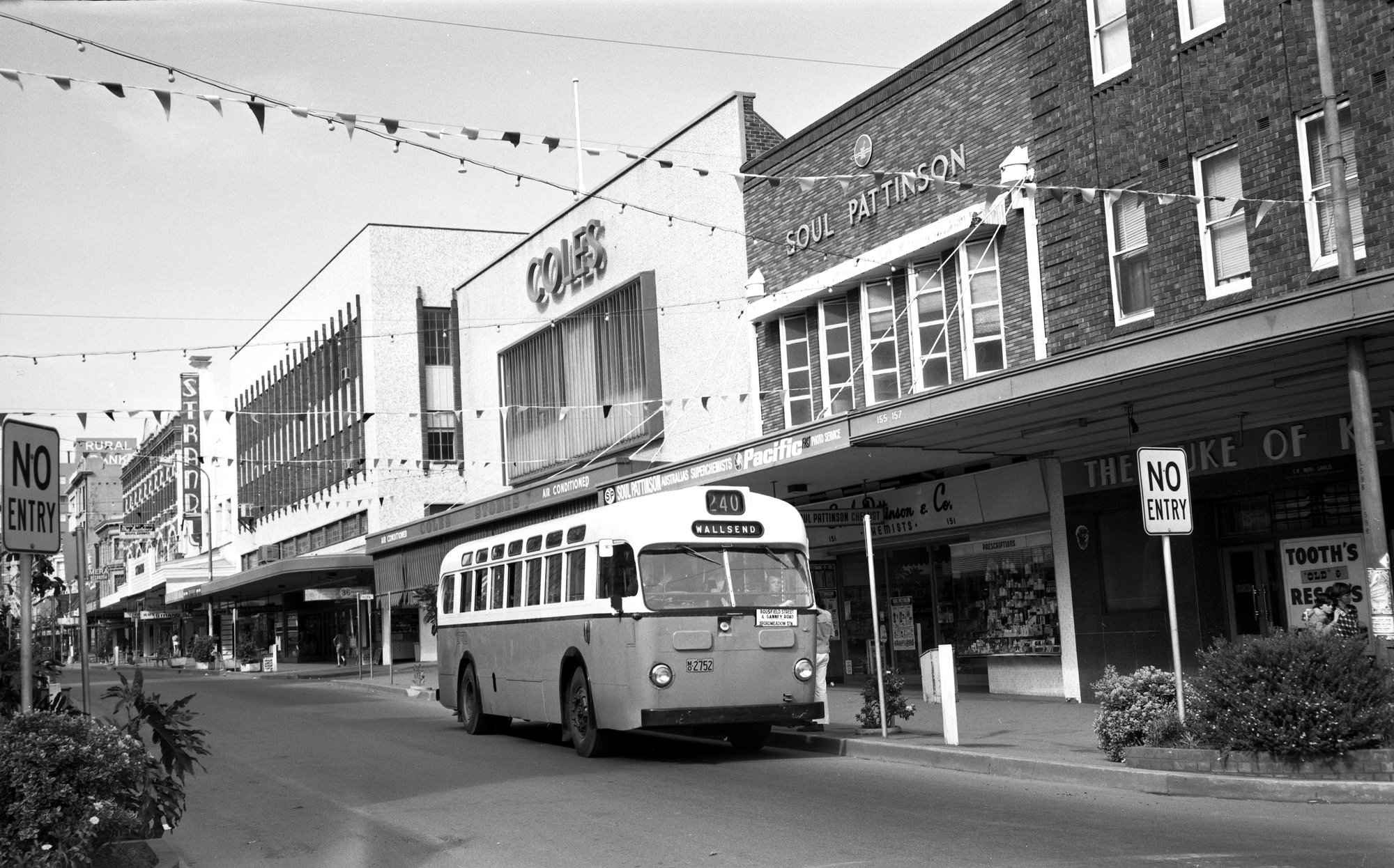 Ward, John, PTC Leyland OPSU1-1 2752, HCVA tour, Hunter Street near Perkins Street, Newcastle, NSW, 5 August 1973 (5th August 1973), [26365_050873_7308-B]. Living Histories, accessed 18/03/2026, https://livinghistories.newcastle.edu.au/nodes/view/93457