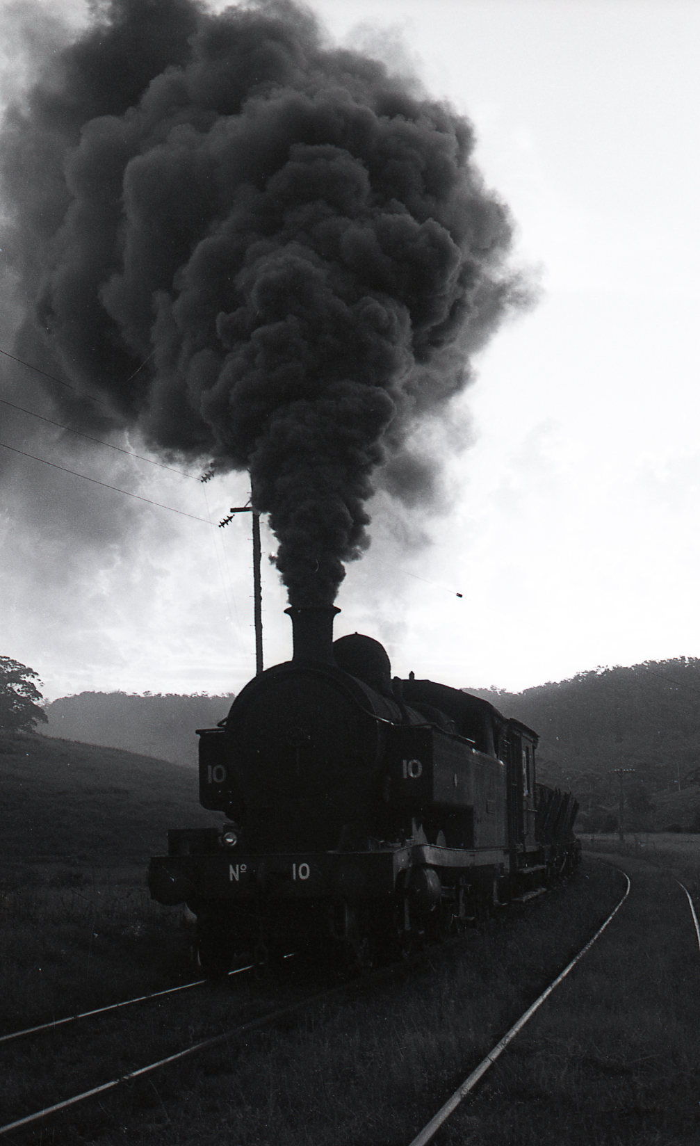 Locomotive No. 10 'Richmond Main' between Doghole and Taylor’s Bridge, Richmond Vale Railway, 9 March 1973