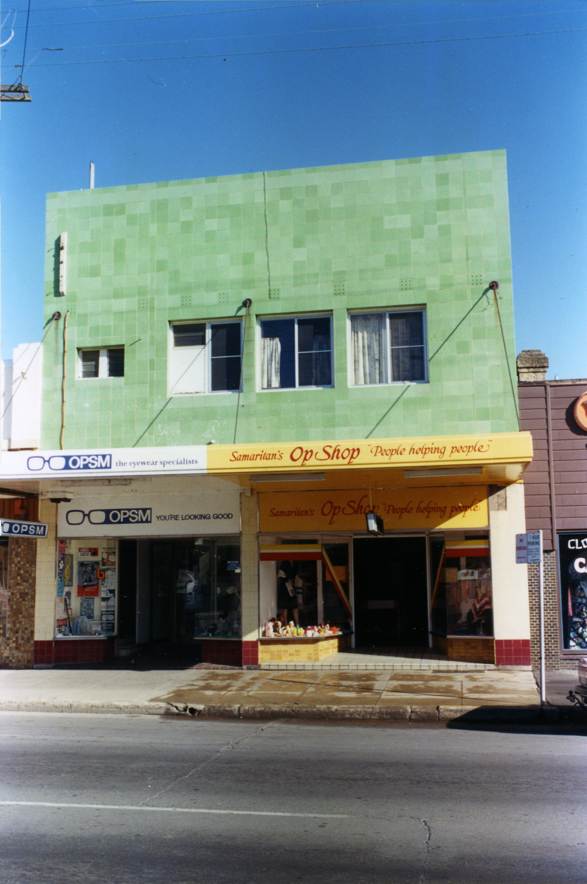 OPSM, Samaritan's Op Shop, Vincent Street, Cessnock, NSW, June 1986