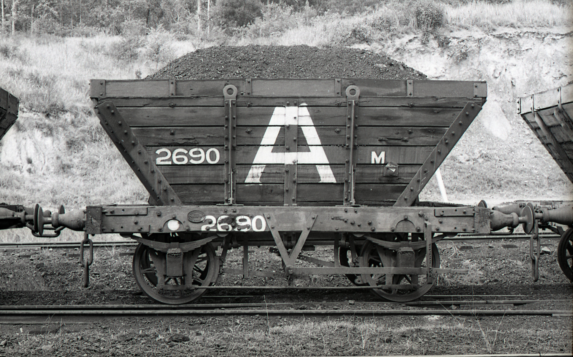 Andrews, Brian Robert, Private Hopper Waggon A 2690 at Stockrington, NSW, April 1973 (April 1973), [BRAN098A_027]. Living Histories, accessed 20/01/2026, https://livinghistories.newcastle.edu.au/nodes/view/94216