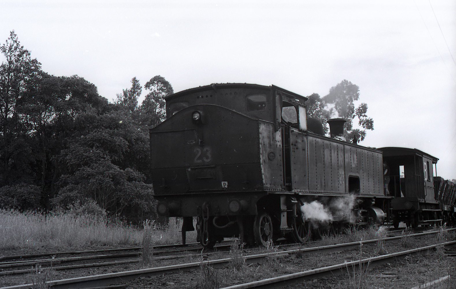 Andrews, Brian Robert, South Maitland Railways No. 23 in empty sidings at Stockrington No. 2 Colliery, NSW, Richmond Vale Railway, April 1973 (April 1973), [BRAN099A_017]. Living Histories, accessed 16/04/2026, https://livinghistories.newcastle.edu.au/nodes/view/94240