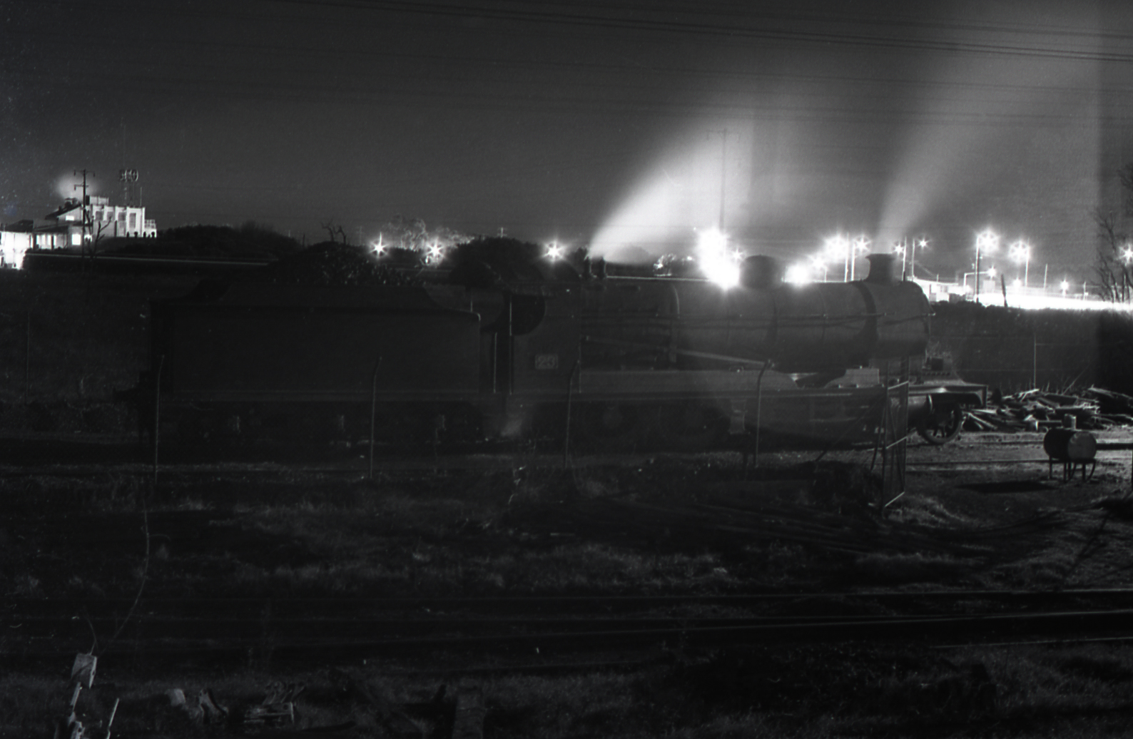 Andrews, Brian Robert, Night time shot of ROD 23 at Loco shed, Hexham, NSW, Richmond Vale Railway, April 1973 (April 1973), [BRAN100A_001]. Living Histories, accessed 20/01/2026, https://livinghistories.newcastle.edu.au/nodes/view/94257