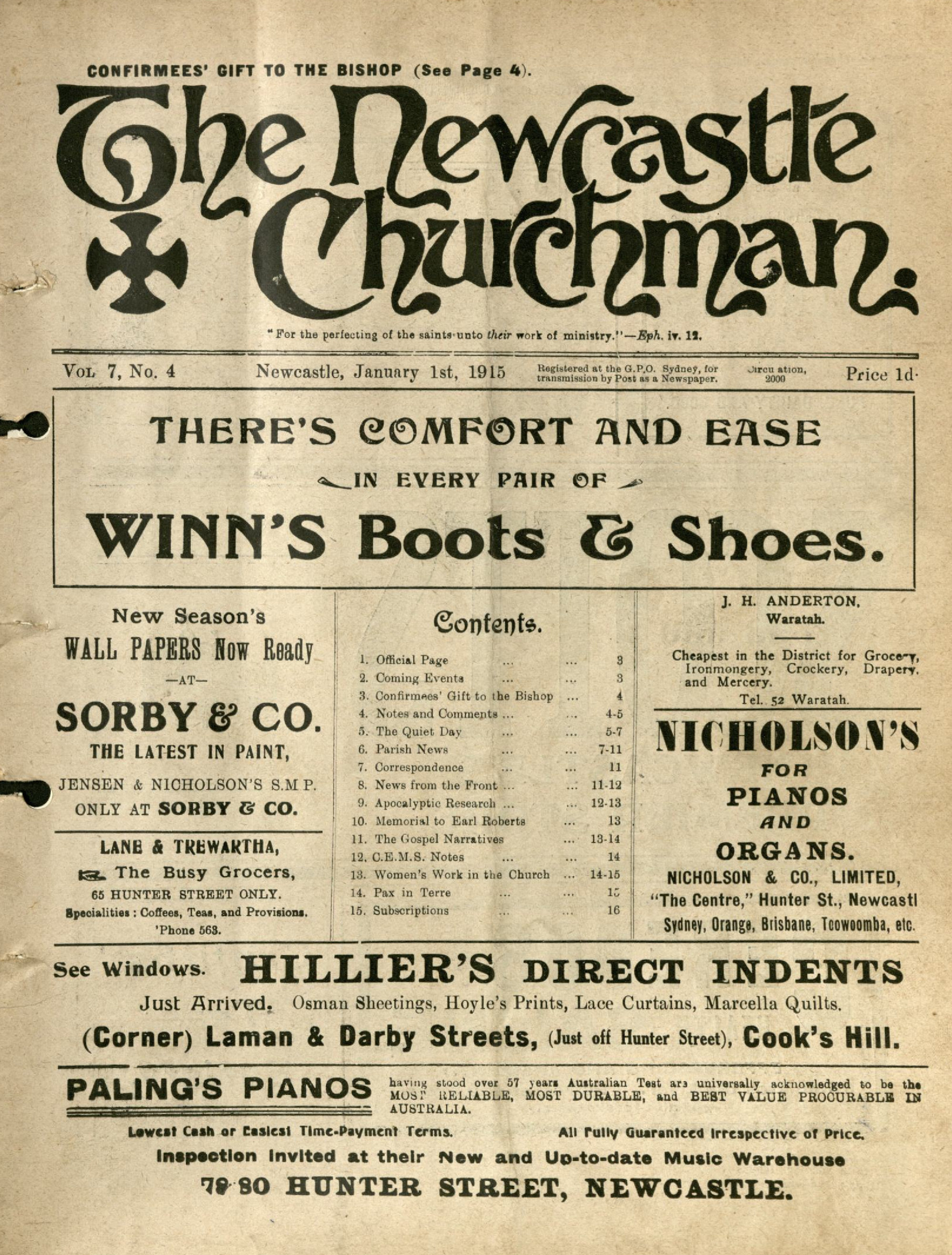 Anglican Church of Australia. Diocese of Newcastle, The Newcastle Churchman, Vol. 7, No. 04, 1 January 1915 (1st January 1915), [B9061]. Living Histories, accessed 14/04/2026, https://livinghistories.newcastle.edu.au/nodes/view/94367