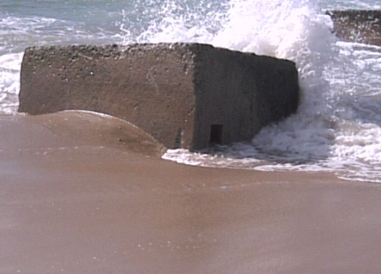 Erosion on Stockton Beach revealing gun emplacement, January 2006, Stockton, NSW
