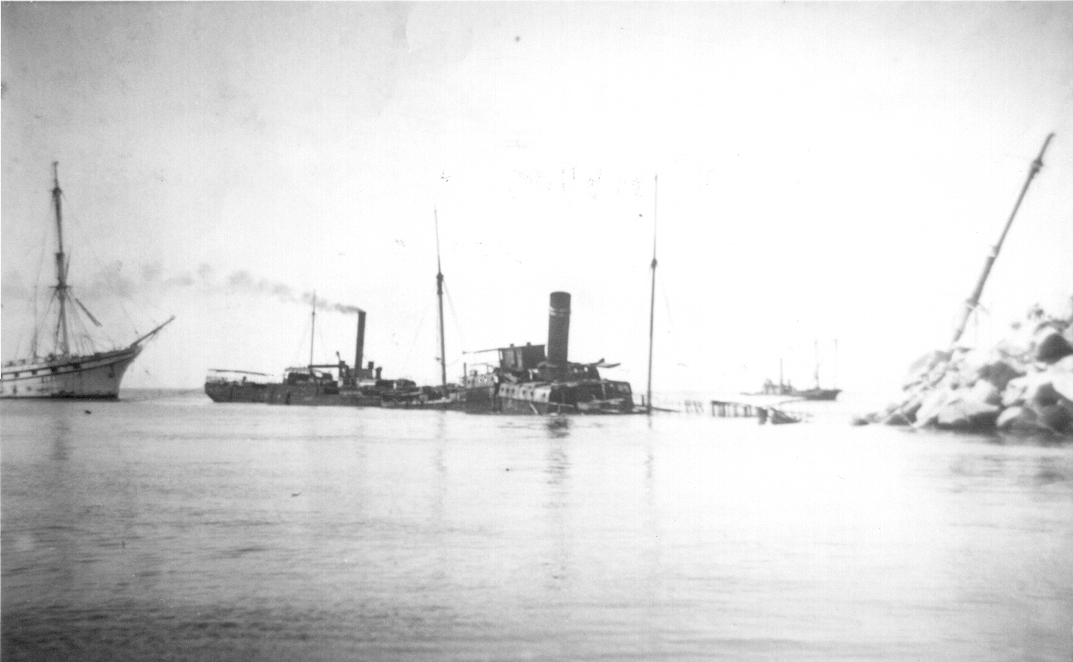 "Adolphe" on the Oyster Bank with "Katoomba" and "Elamang" on right, Stockton, NSW , [10-elamang, adalophe 05]. Living Histories, accessed 16/04/2026, https://livinghistories.newcastle.edu.au/nodes/view/94802