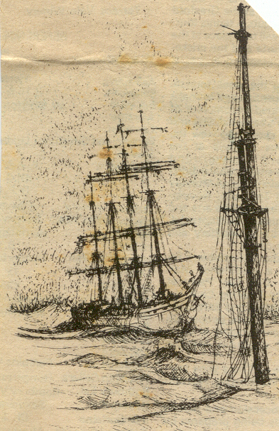 Sketch of shipwrecked "Adolphe" drawn from October 1904 image