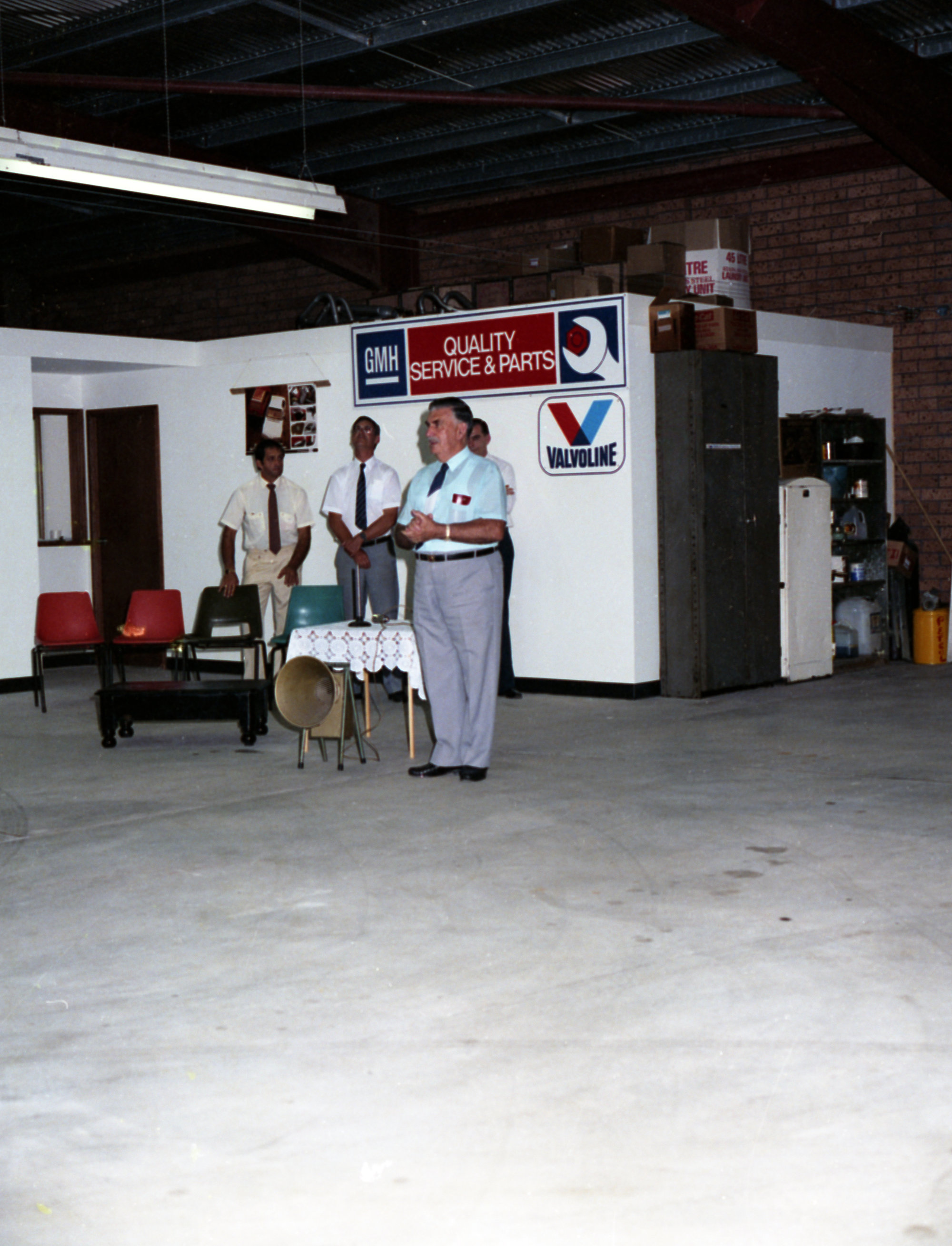 Sternbeck, Percival William, 1921-2004, Opening of Fren's Holden centre, Kurri Kurri, NSW, April 1985 (1986-04), [Sternbeck-01130-Apr-1986-006]. Living Histories, accessed 16/03/2026, https://livinghistories.newcastle.edu.au/nodes/view/95108