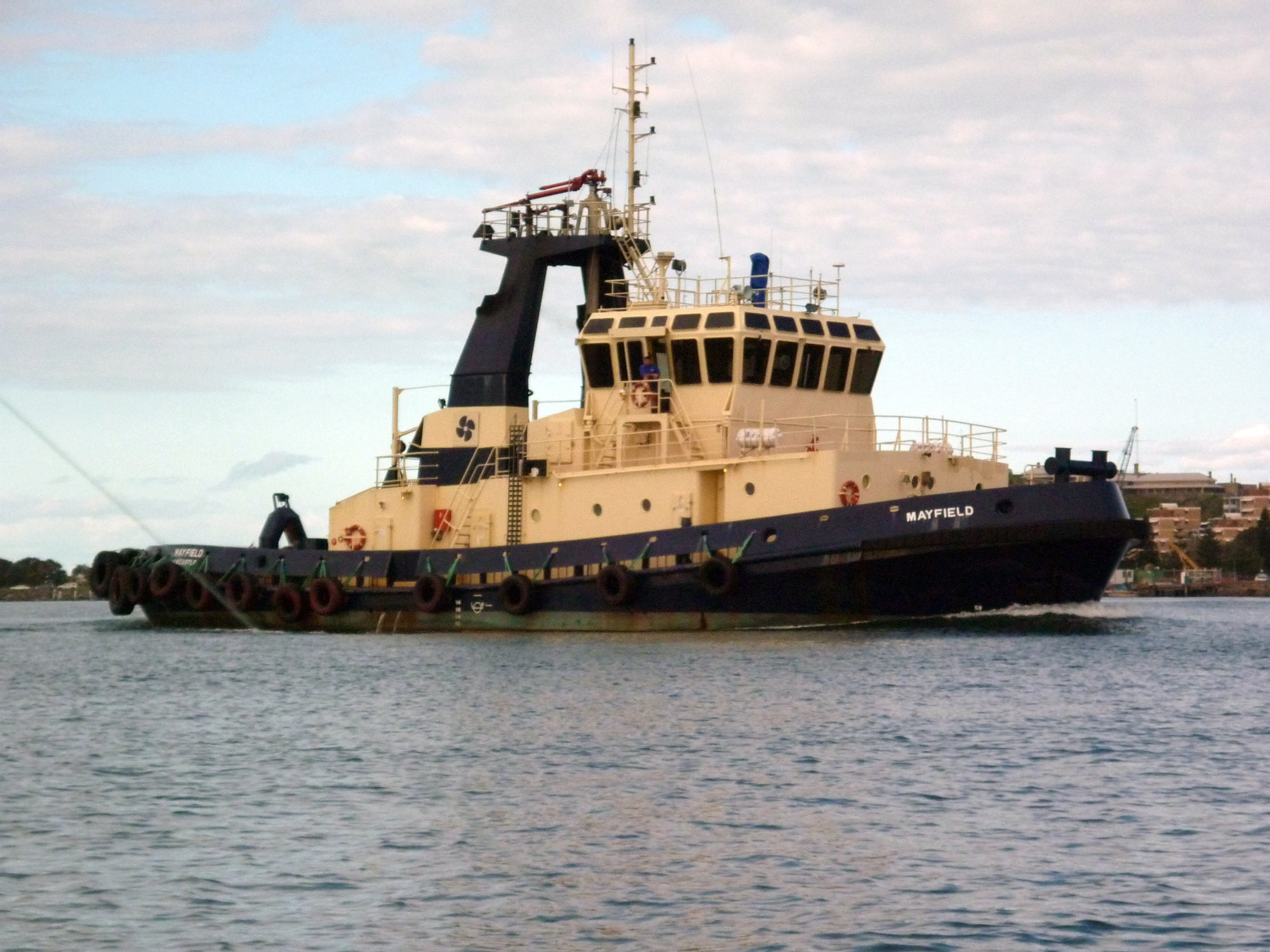 Tugboat "Mayfield" returns to port, Newcastle Harbour, NSW, 5 April 2010