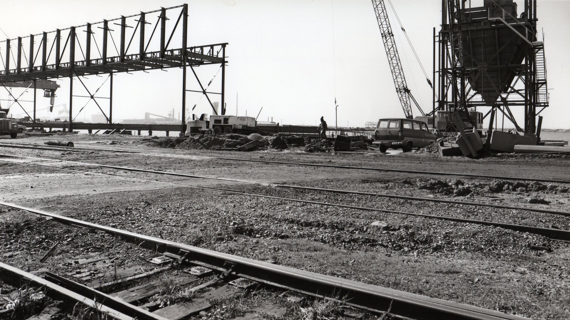 Port Waratah Coal Services, WC3, WC4, and SB3 under construction, 1975 (1975), [1975 PWCS WC3 WC4 SB3 under way]. Living Histories, accessed 08/03/2026, https://livinghistories.newcastle.edu.au/nodes/view/95871