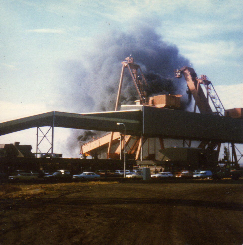 Port Waratah Coal Services, SL1 fire, 1 August 1978 (1st August 1978), [1978 Aug.1 PWCS SL1 fire No2]. Living Histories, accessed 19/01/2026, https://livinghistories.newcastle.edu.au/nodes/view/95897