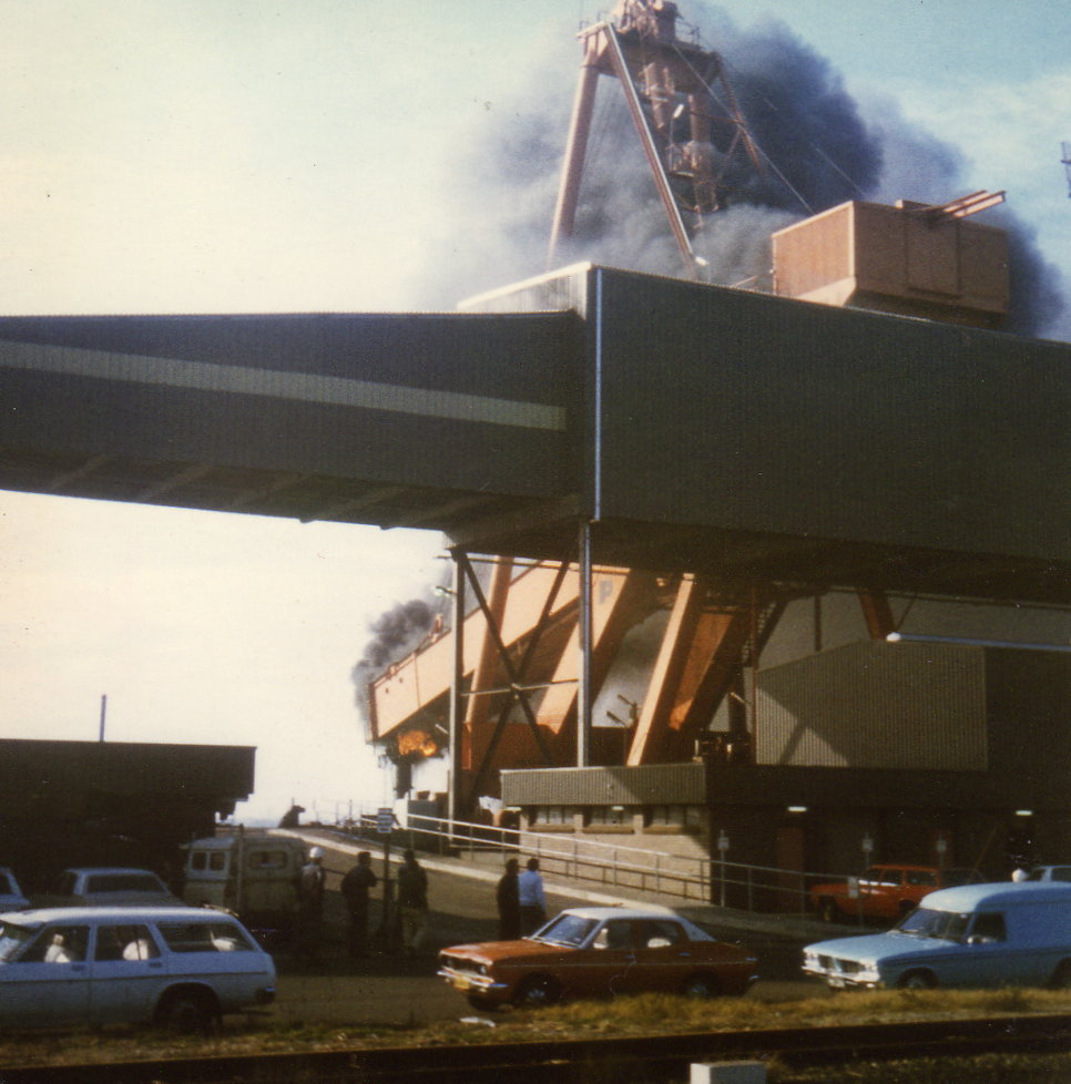 Port Waratah Coal Services, SL1 fire, 1 August 1978 (1st August 1978), [1978 Aug.1 PWCS SL1 fire No5]. Living Histories, accessed 25/01/2026, https://livinghistories.newcastle.edu.au/nodes/view/95900