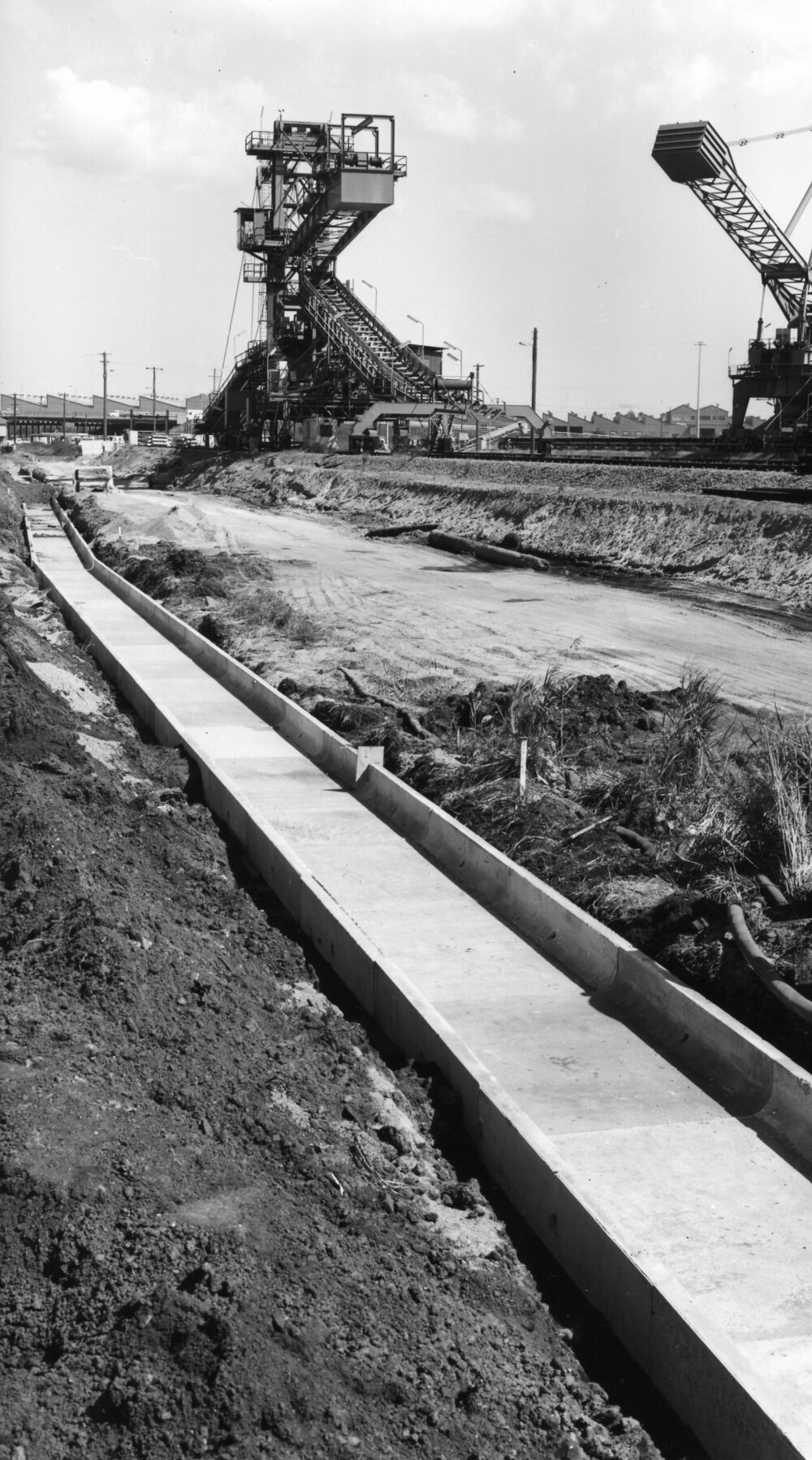 Port Waratah Coal Services, Stk3 nearly completed, 1978 (1978), [1978 PWCS Stk3 nearly comp.]. Living Histories, accessed 10/02/2026, https://livinghistories.newcastle.edu.au/nodes/view/95914