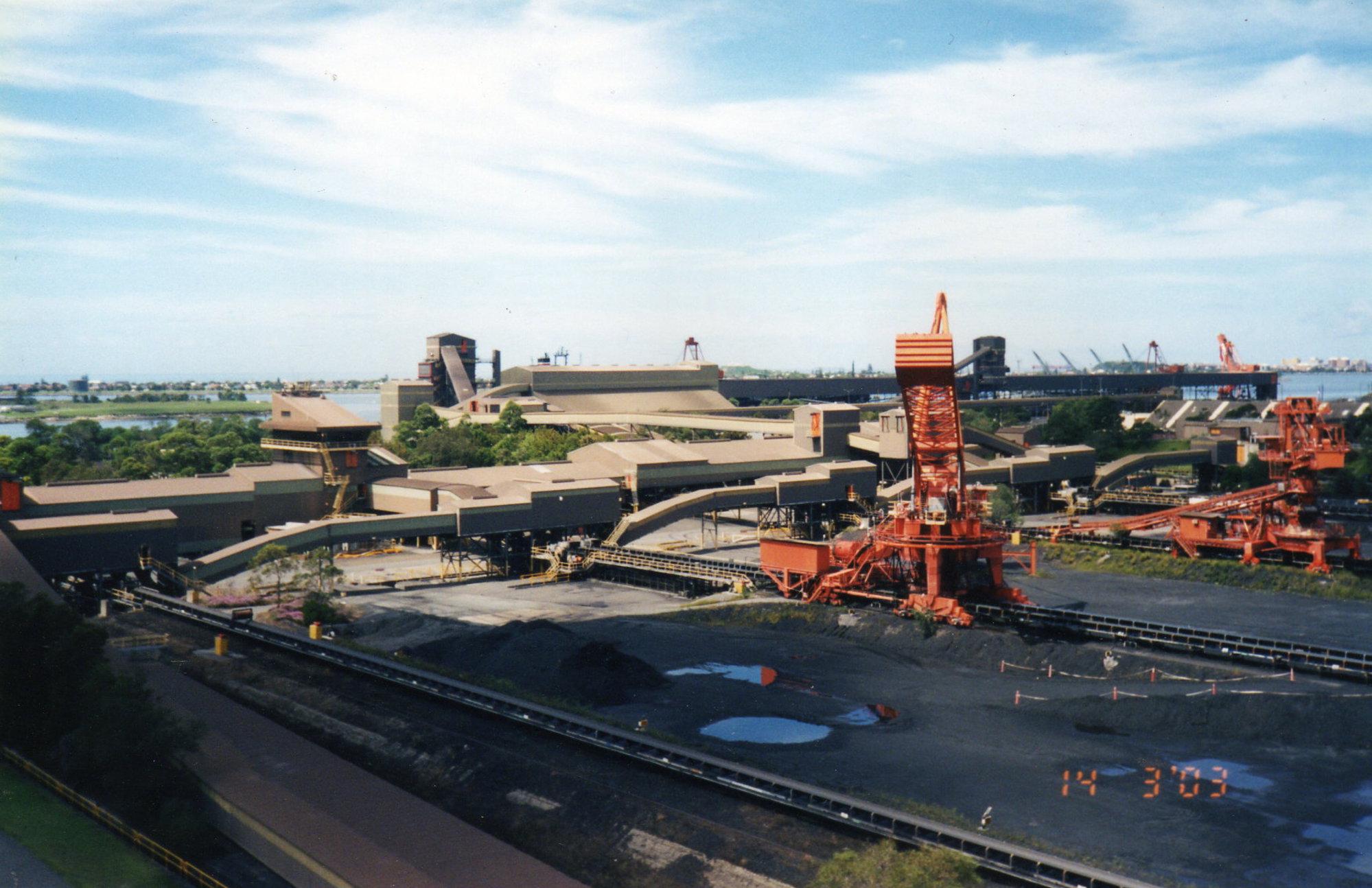 Looking south east from top surge bin 1, Port Waratah Coal Services, 14 March 2003 (14th March 2003), [2003 March. PWCS looking south east from top surge bin 1]. Living Histories, accessed 05/12/2025, https://livinghistories.newcastle.edu.au/nodes/view/96006