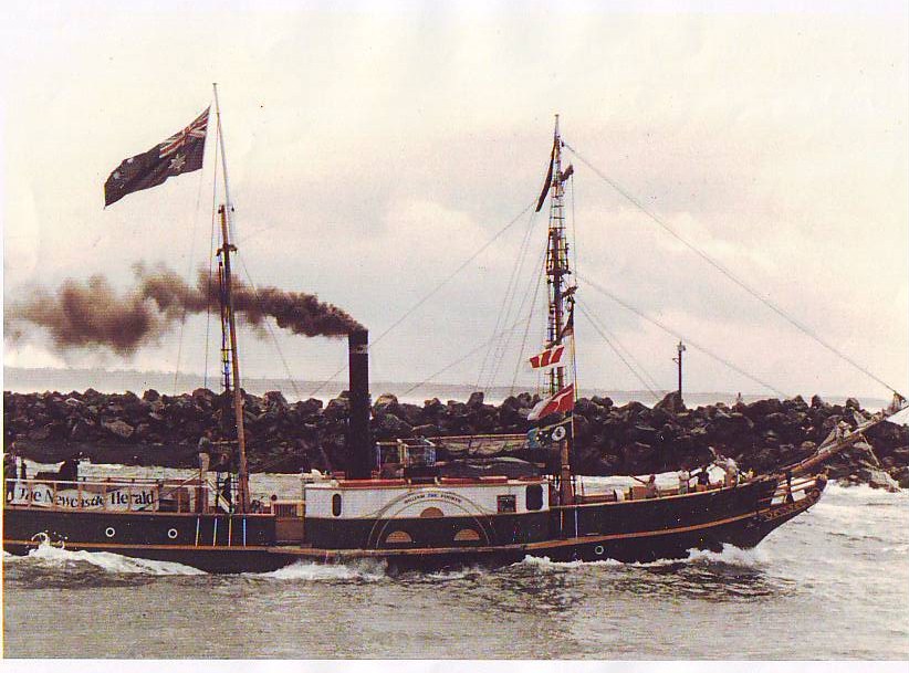 "SS William the Fourth" replica passing Stockton Breakwater, NSW, [n.d.], [USB 2: William VI PASSING STOCKTON BREAKWATER]. Living Histories, accessed 18/02/2026, https://livinghistories.newcastle.edu.au/nodes/view/96356