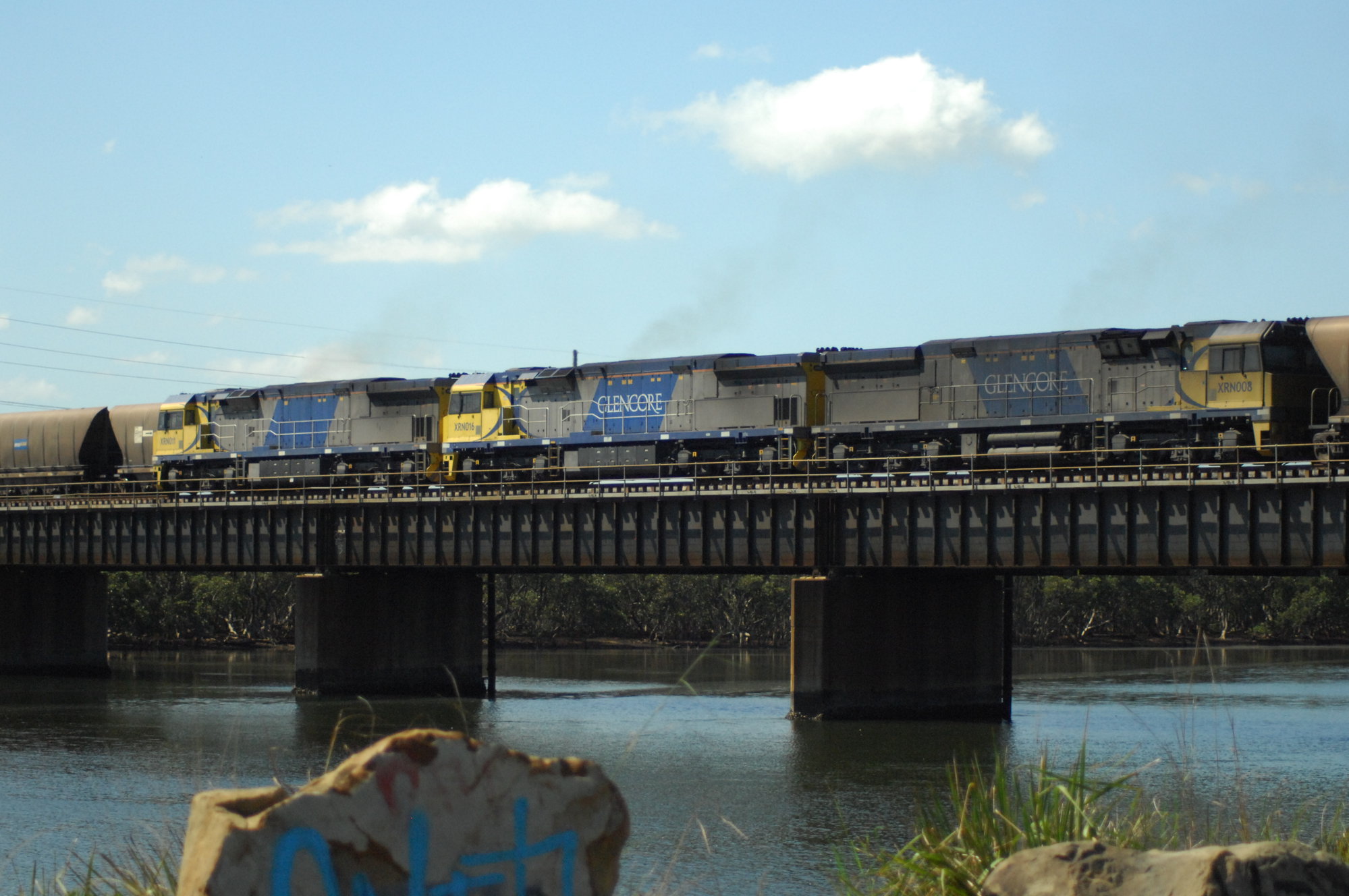 Sansom, Peter, XRN011, XRN016 and XRN008 cross the Hunter River bridge on their way to Kooragang, NSW, 1 April 2016 (1st April 2016), [OL_Sansom_Kooragang_201909_0043]. Living Histories, accessed 16/04/2026, https://livinghistories.newcastle.edu.au/nodes/view/96752
