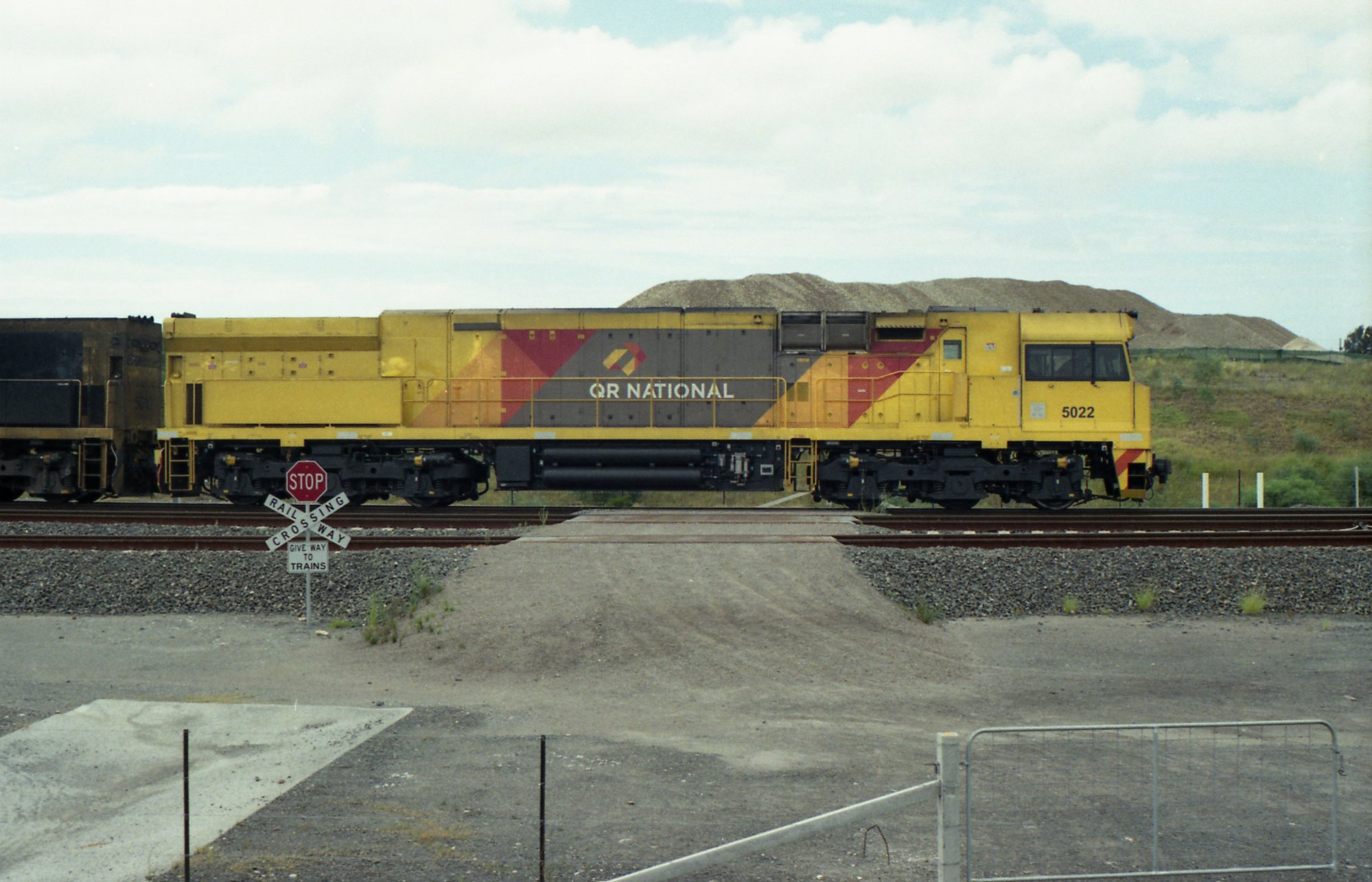Sansom, Peter, QR National 5022 seen with a classmate on the departure roads for NCIG at Kooragang, NSW, July 2011 (Between 1st July 2011 and 31st July 2011), [OL_Sansom_Kooragang_201909_0070]. Living Histories, accessed 15/04/2026, https://livinghistories.newcastle.edu.au/nodes/view/96779
