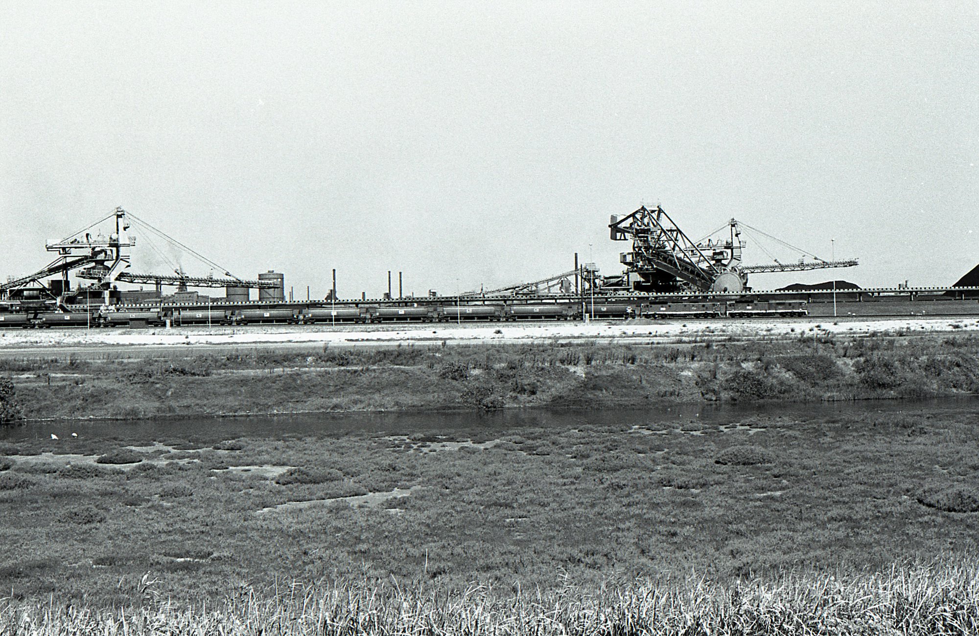 Sansom, Peter, Two 81 class locos with a string on one hundred ton hoppers stand on a departure road at Kooragang, NSW, [OL_Sansom_Kooragang_201909_0135]. Living Histories, accessed 20/03/2026, https://livinghistories.newcastle.edu.au/nodes/view/96844