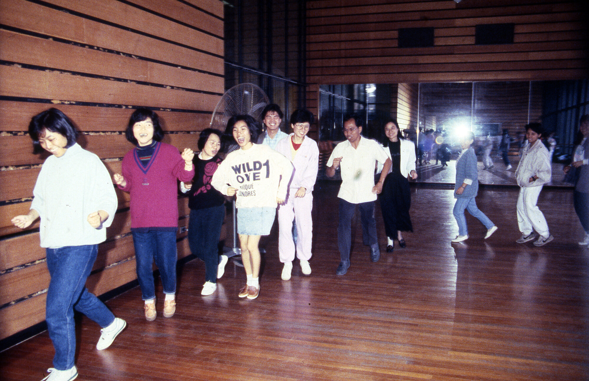 Medical Communication Unit, University of Newcastle, Australia, Students dancing in a line - Medical Communication Unit, the University of Newcastle, Australia, [MCU-AsianStudents-Dancing013]. Living Histories, accessed 09/02/2026, https://livinghistories.newcastle.edu.au/nodes/view/9700