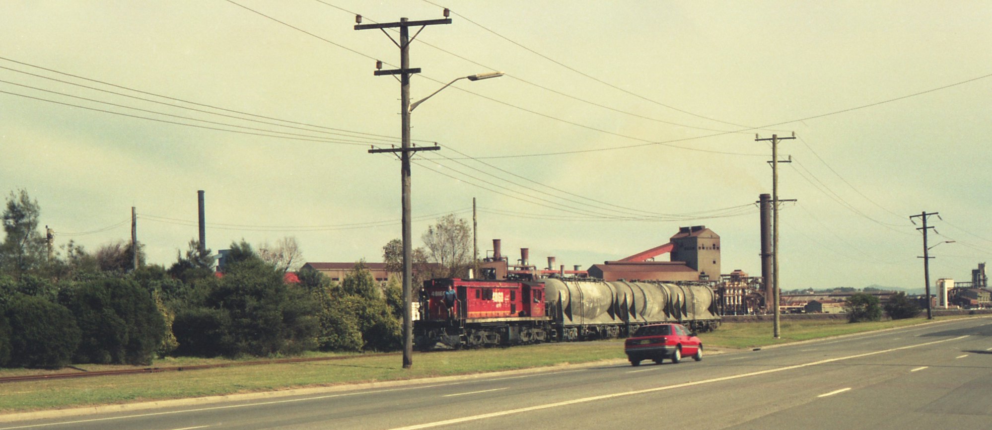 Sansom, Peter, 4816 with cement hoppers running alongside Cormorant road at Kooragang, NSW, [OL_Sansom_Kooragang_201909_0312]. Living Histories, accessed 20/03/2026, https://livinghistories.newcastle.edu.au/nodes/view/97021