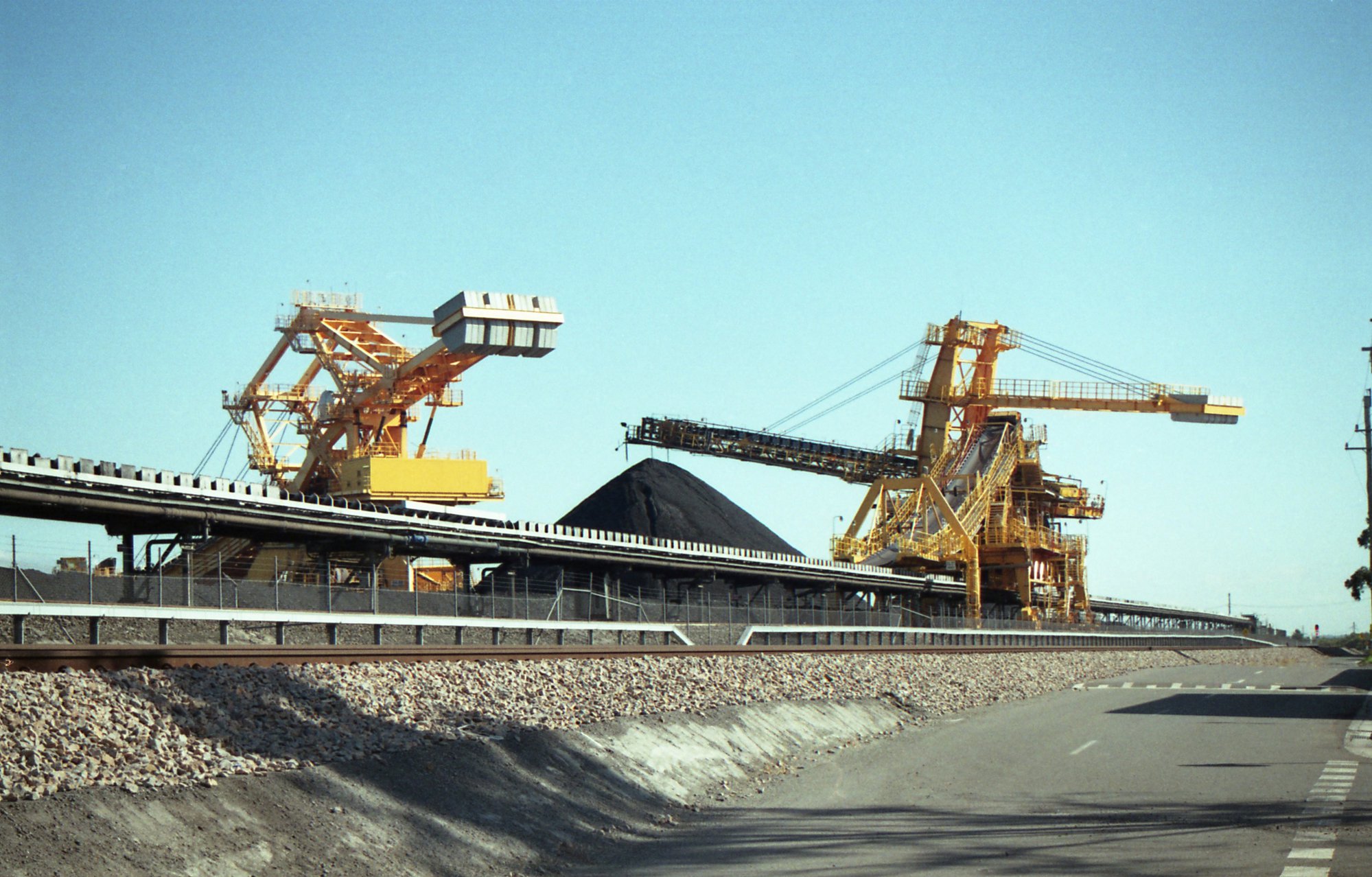 Sansom, Peter, A stacker and a reclaimer at Kooragang, NSW, June 2014 (Between 1st June 2014 and 30th June 2014), [OL_Sansom_Kooragang_201909_0337]. Living Histories, accessed 20/01/2026, https://livinghistories.newcastle.edu.au/nodes/view/97046