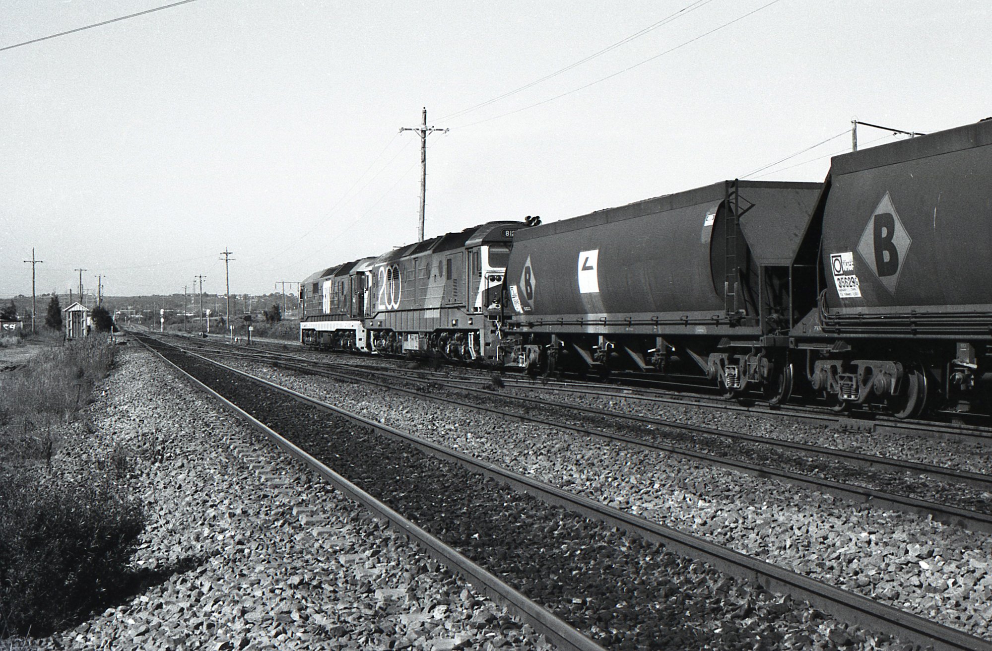 A pair of 81 class locomotives heading through Sandgate towards Port Waratah with 42 loaded hoppers.