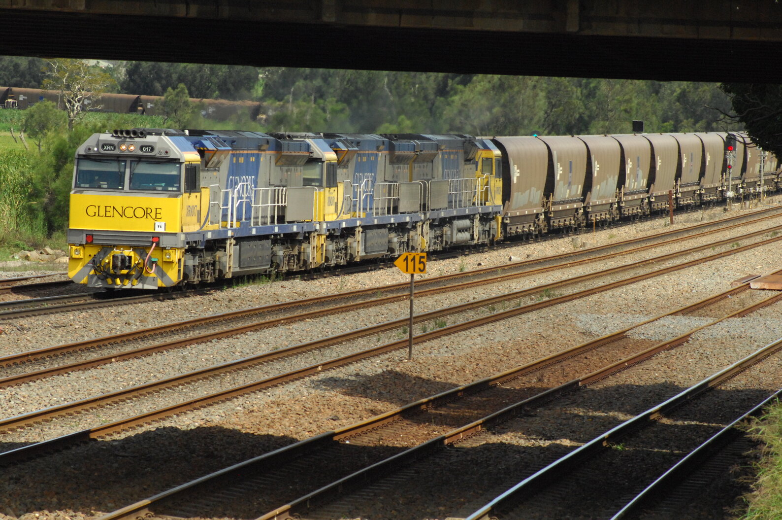 XRN017 and two classmates on unit 96 drifting through Sandgate as they leave the Kooragang branch to head north