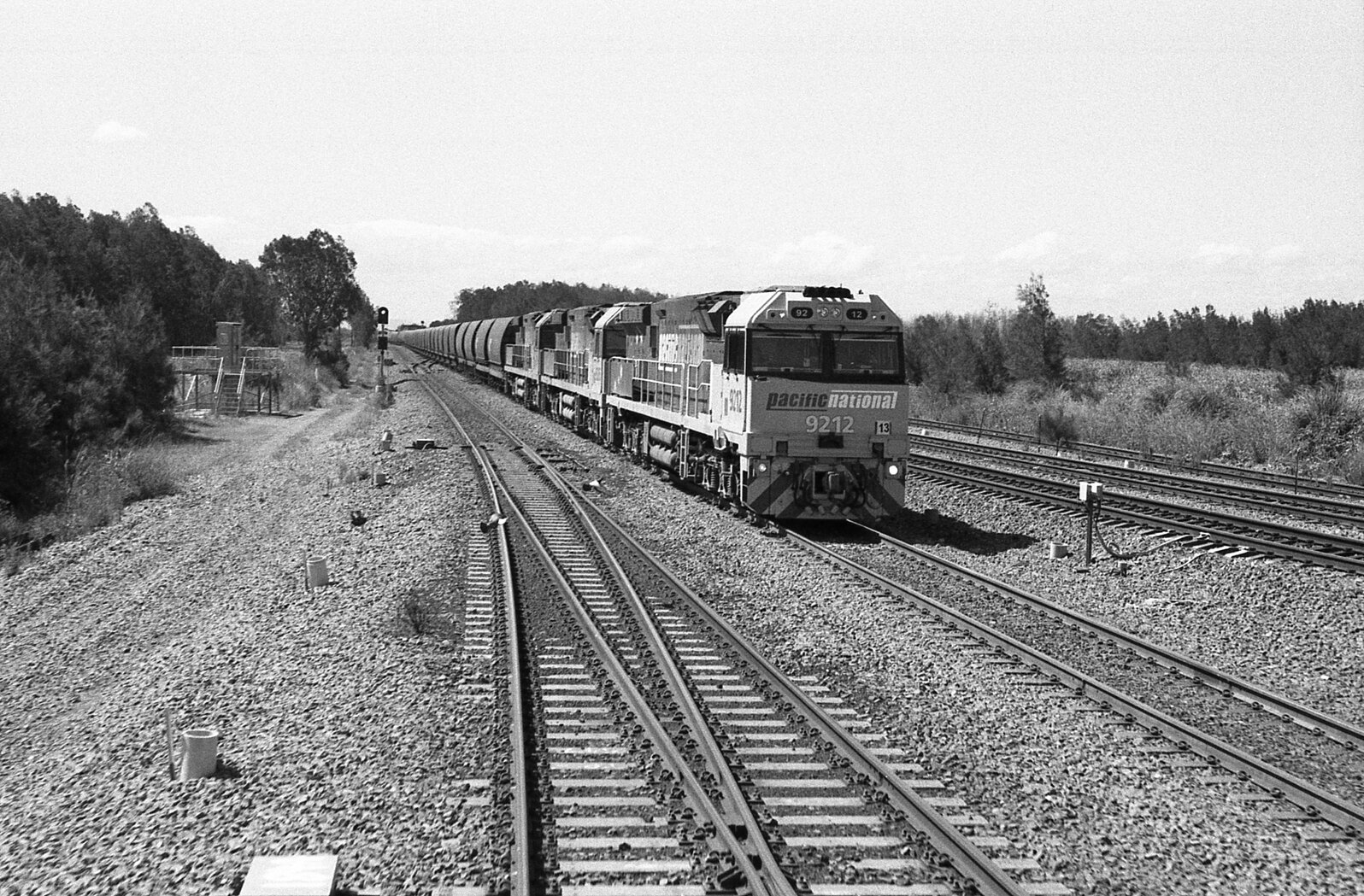 9212 and three classmates on an up coal train at Sandgate, NSW