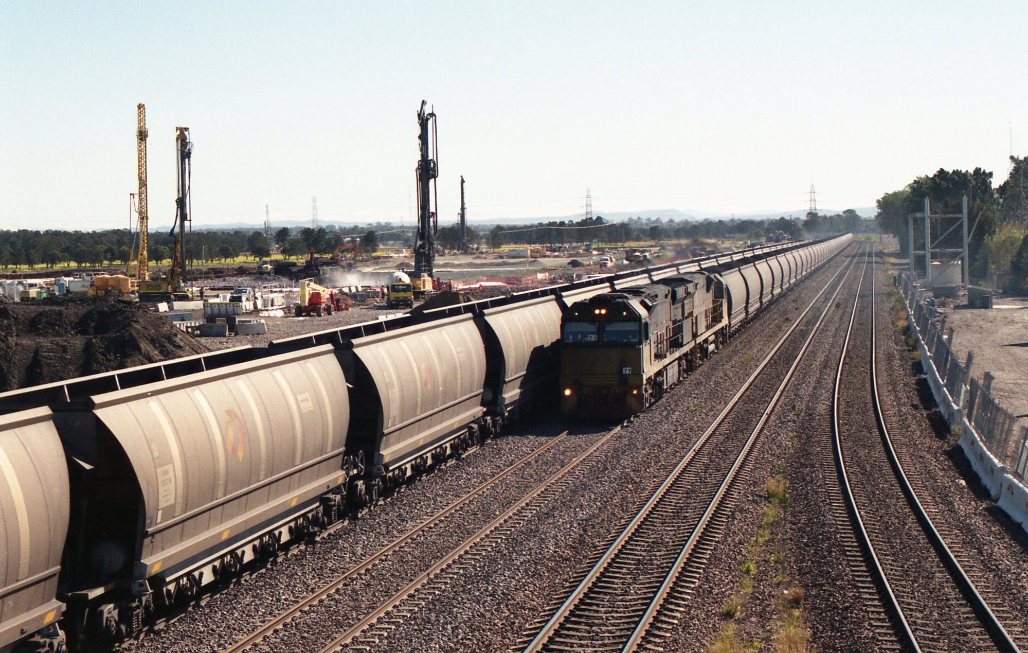 Sansom, Peter, TW, O Aurizon trains pass at Hexham as work continues on the new staging sidings, July 2014 (Between 1st July 2014 and 31st July 2014), [OL_Sansom_2019_HCT_0137]. Living Histories, accessed 15/04/2026, https://livinghistories.newcastle.edu.au/nodes/view/97286