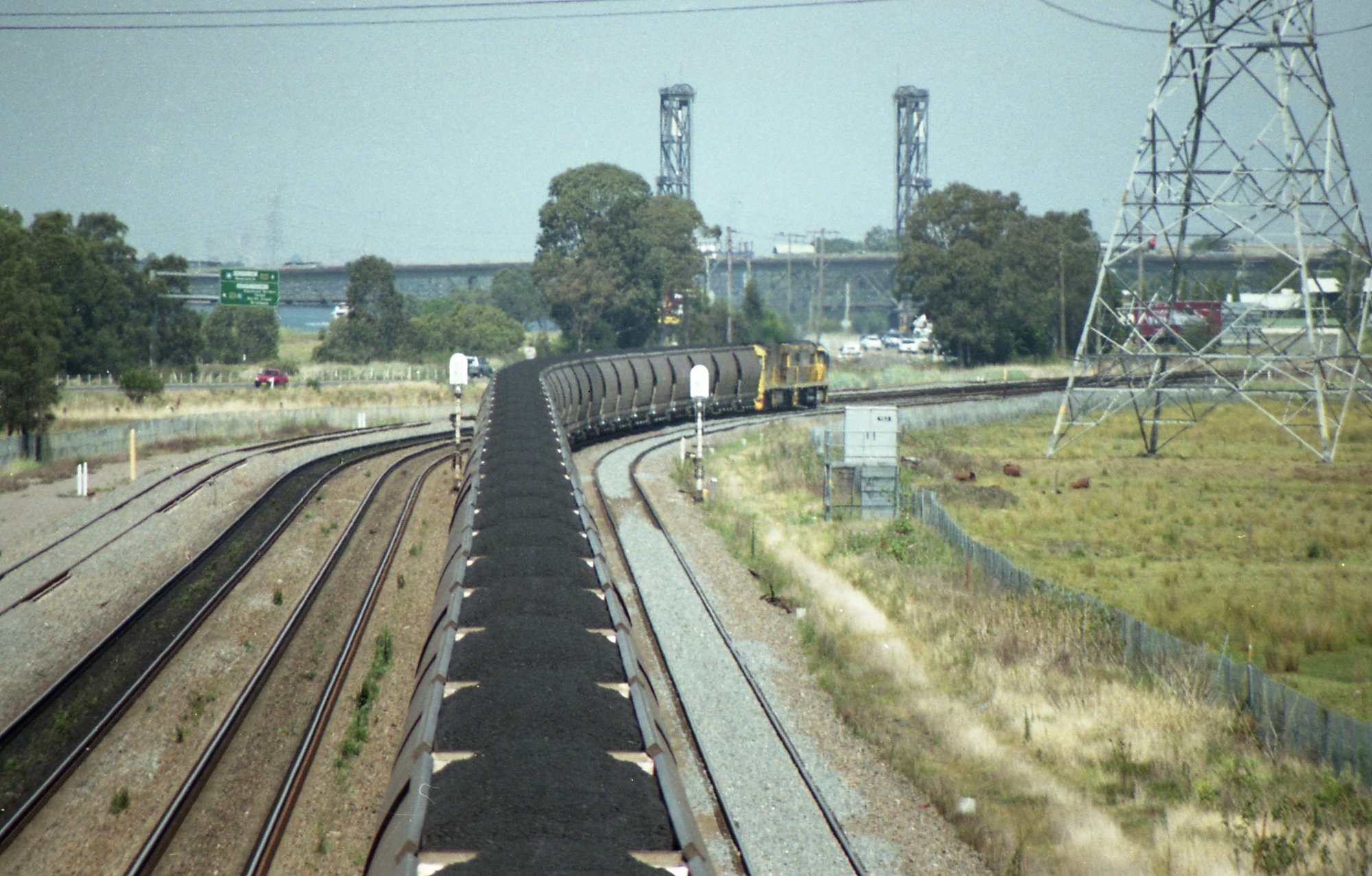 Sansom, Peter, TW, O Aurizon locomotives with a loaded coal train between Tarro and Hexham, NSW, October 2013 (Between 1st October 2013 and 31st October 2013), [OL_Sansom_2019_HCT_0165]. Living Histories, accessed 20/03/2026, https://livinghistories.newcastle.edu.au/nodes/view/97314