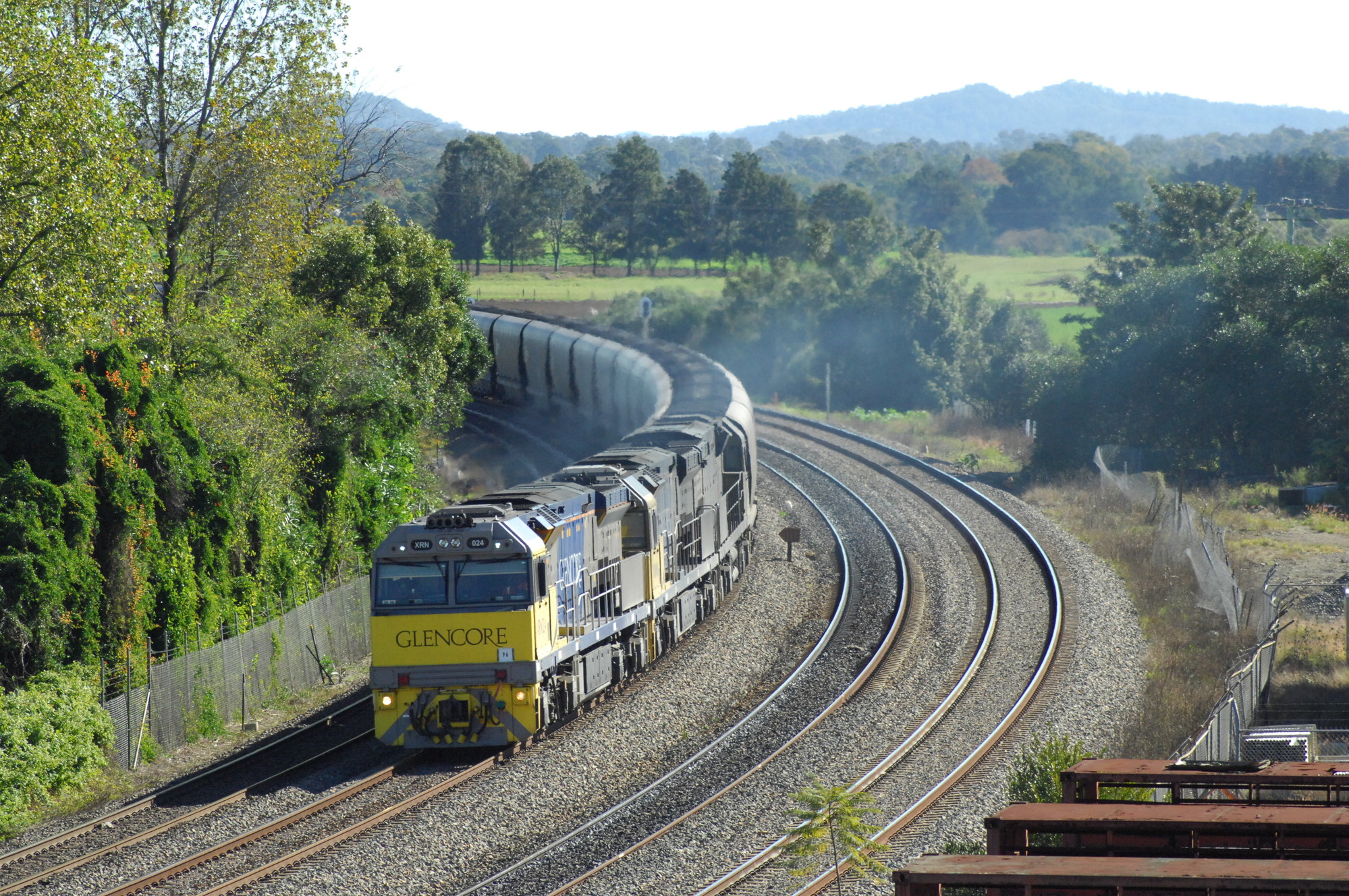 Glencore XRN024 and two classmates on unit 96 seen between Maitland and East Maitland on the up coal road, 29 May 2017