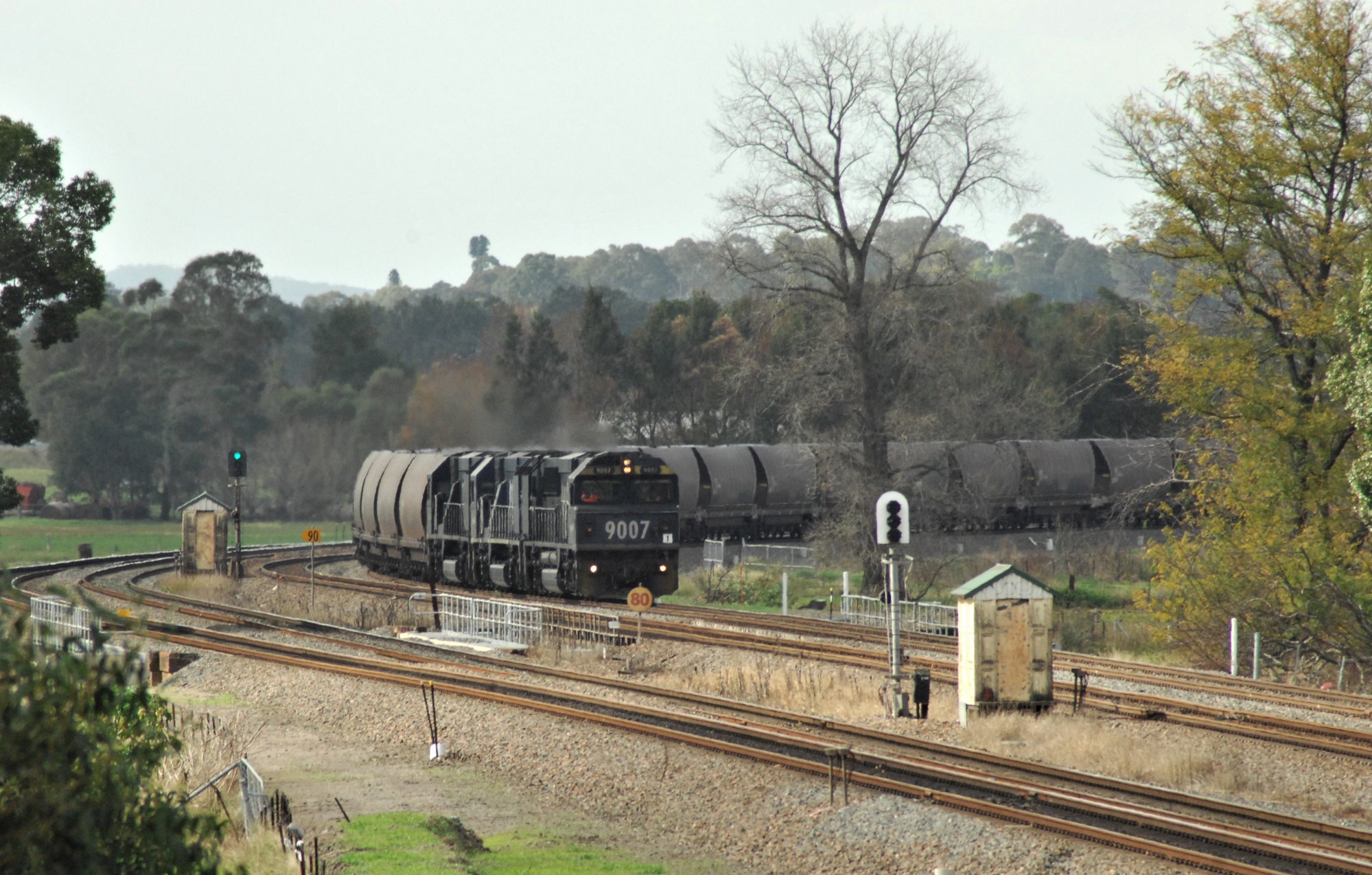 9007 and two classmates on unit 1 seen between East Maitland on the down coal road, 25 May 2015