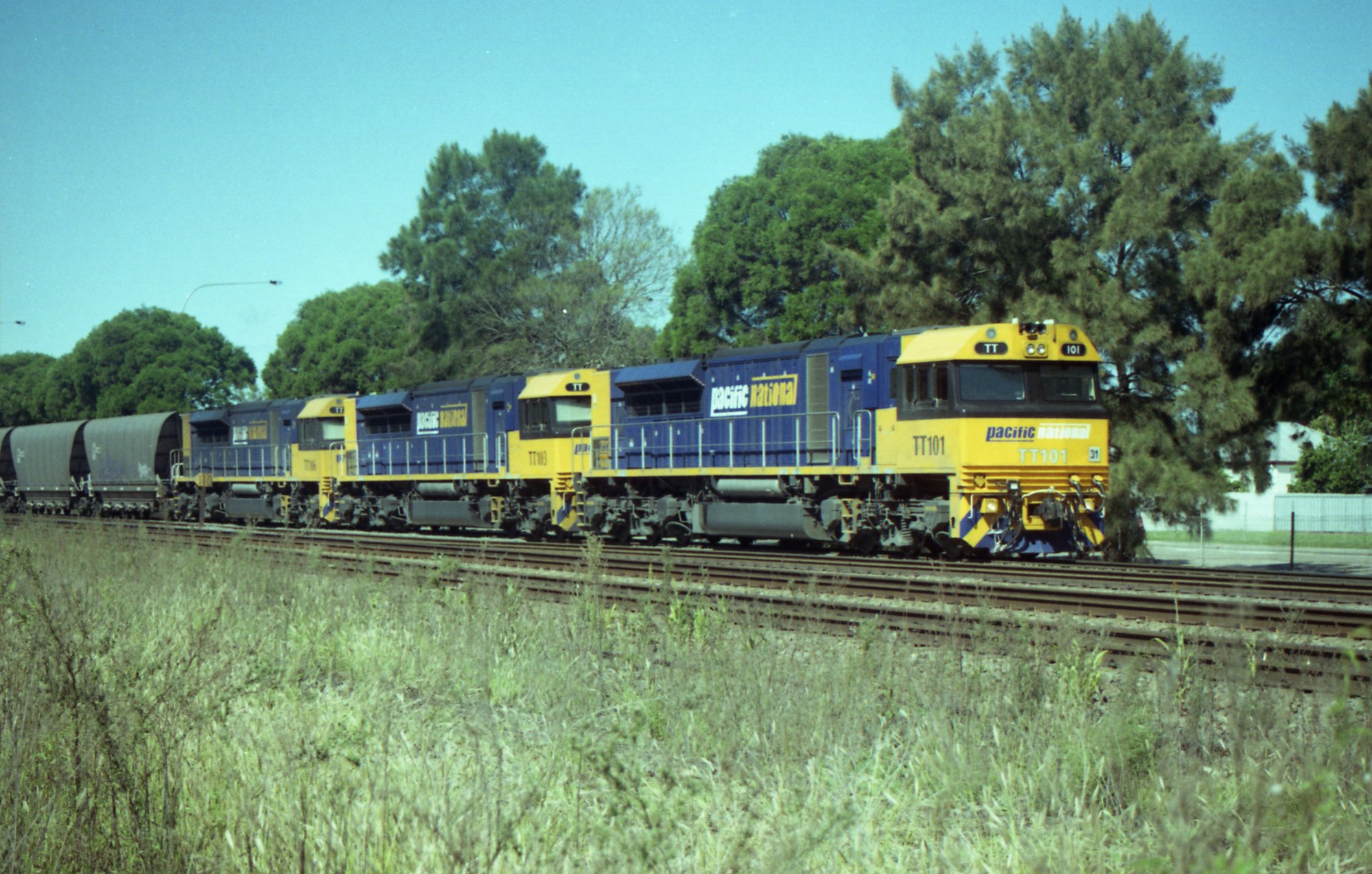 Sansom, Peter, TT101, TT103 and another TT class drift through Maitland on their way to a mine in the Hunter Valley, NSW, April 2011 (Between 1st April 2011 and 30th April 2011), [OL_Sansom_2019_HCT_0305]. Living Histories, accessed 13/01/2026, https://livinghistories.newcastle.edu.au/nodes/view/97454