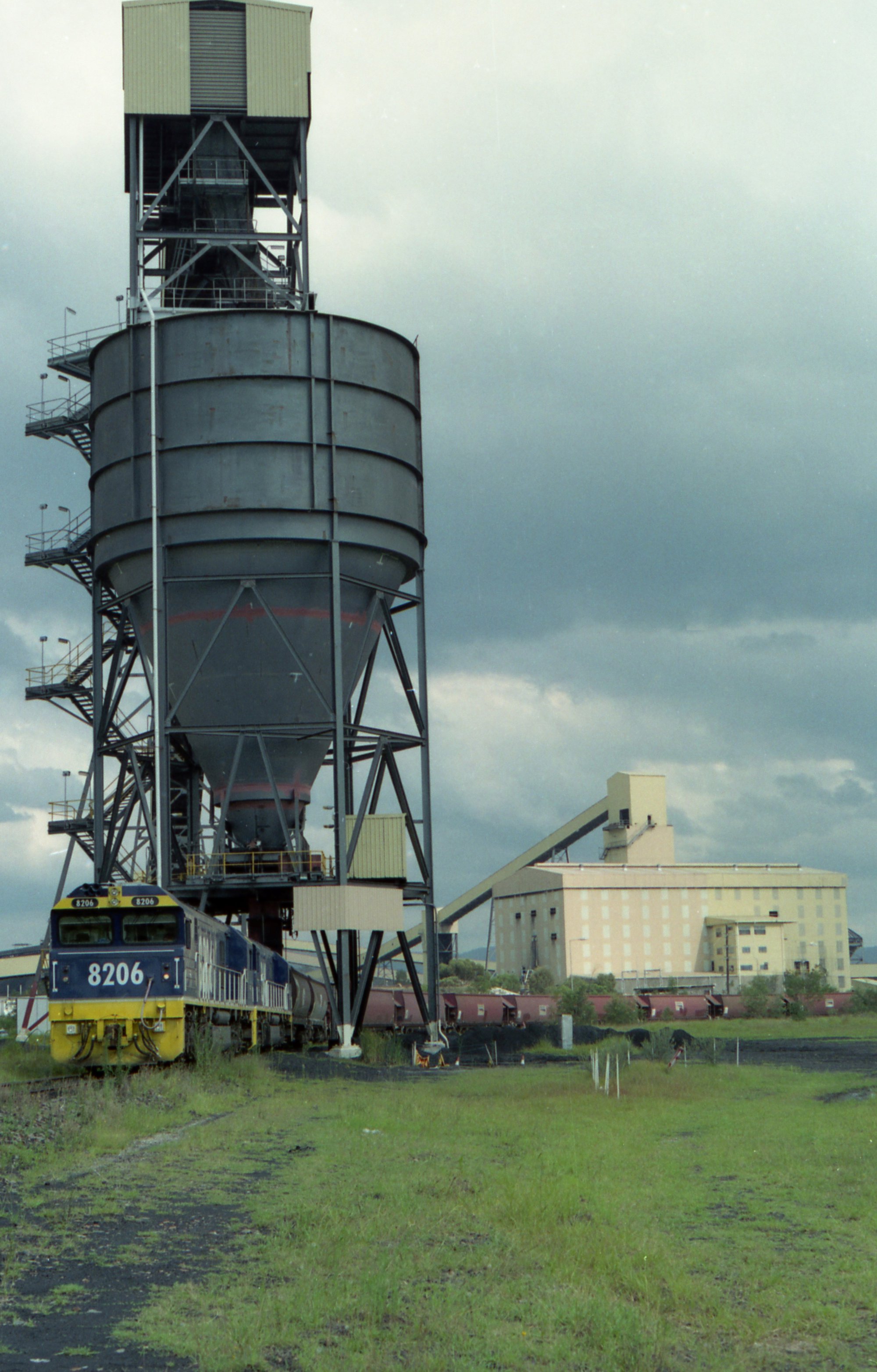 8206 and a classmate wait to commence loading at Bulga, NSW