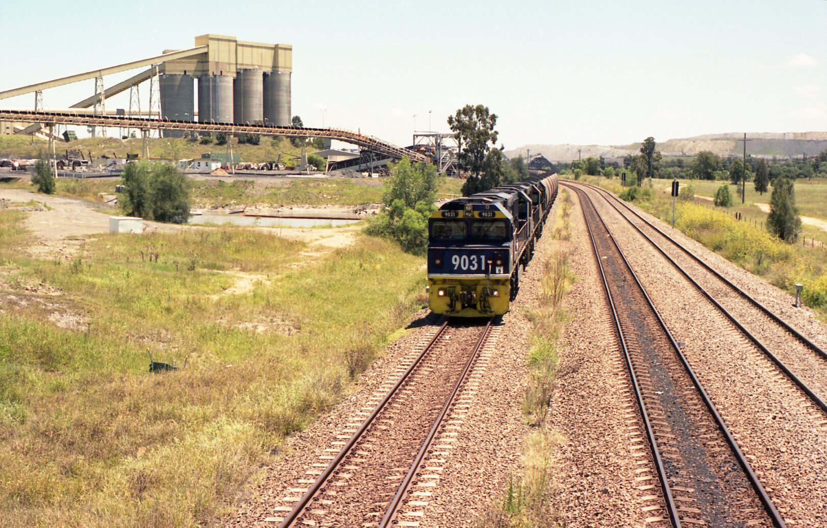 9031 and two classmates on unit 9 nearing the end of loading operations at Bayswater, NSW, January 2012