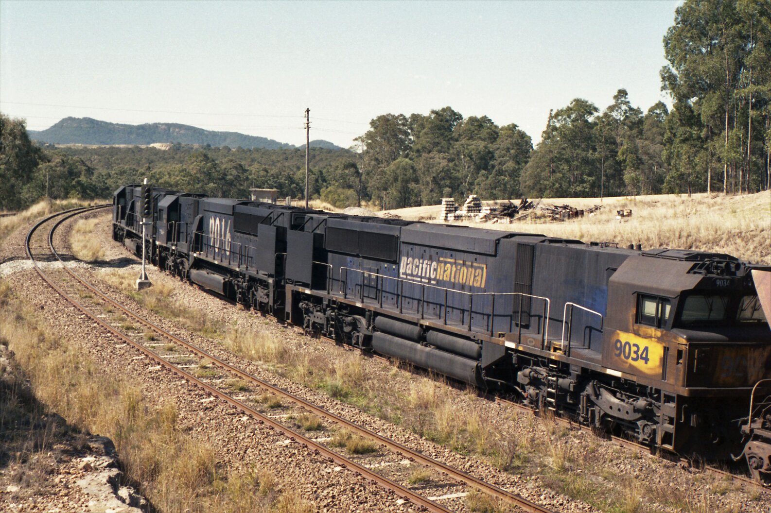 9012, 9016 and a very dirty 9034 wait for the bin to be recharged before loading continues at Drayton, NSW, August 2013